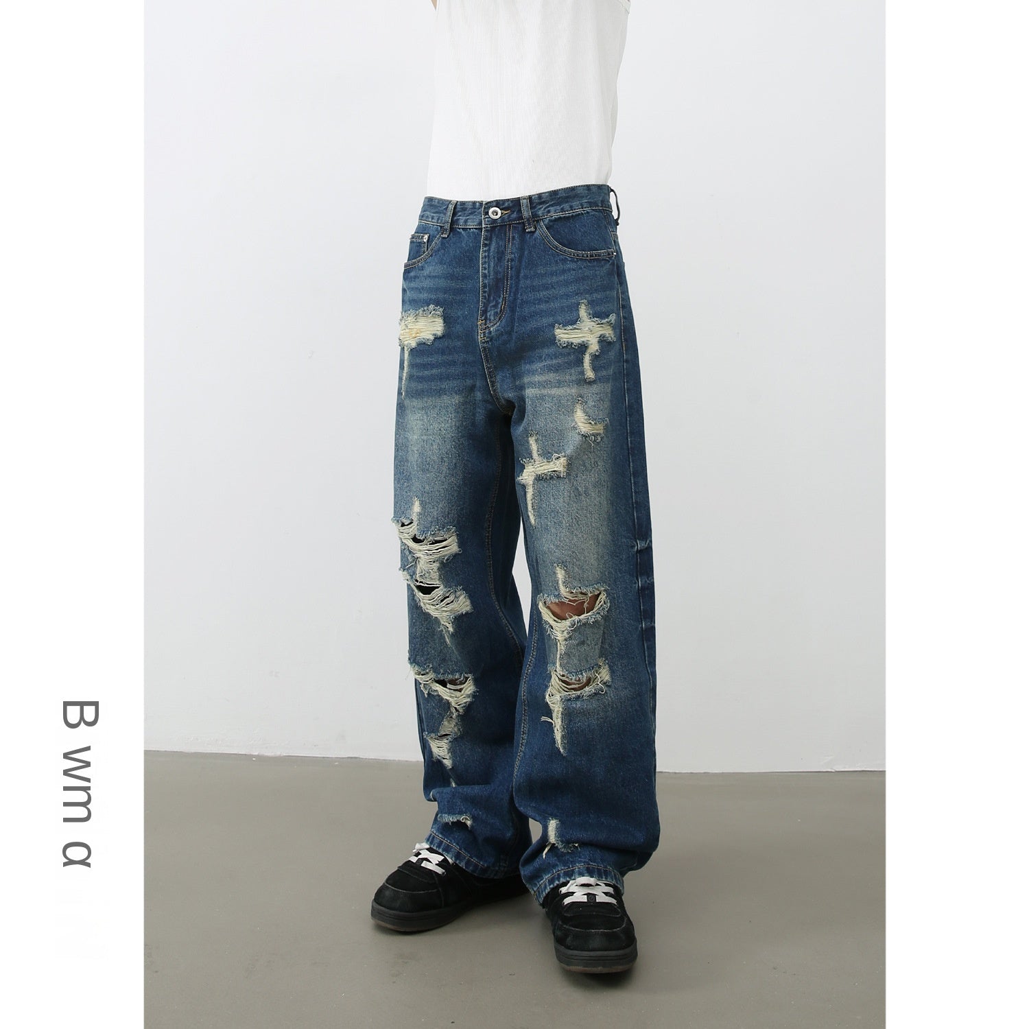 American Style Distressed Denim Pants for Men - High Street Retro Vibe