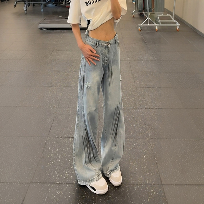 Bent Knife Denim Straight Tube Loose Wide Leg Slightly Flared Pants