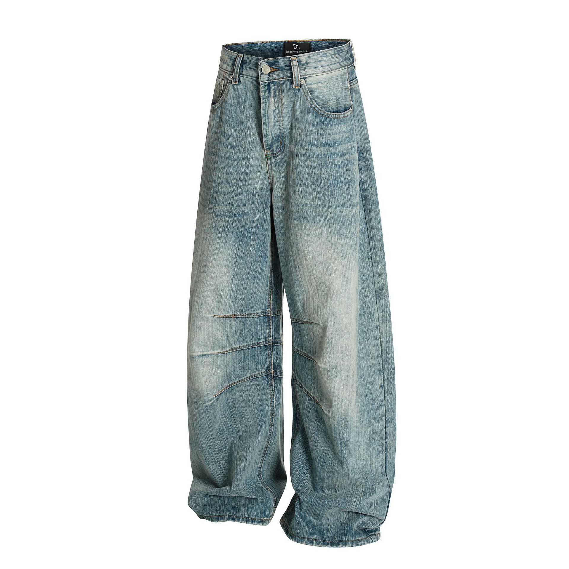 Curved Knife Retro Washed Cowboy Wide Leg Long Pants for Men and Women
