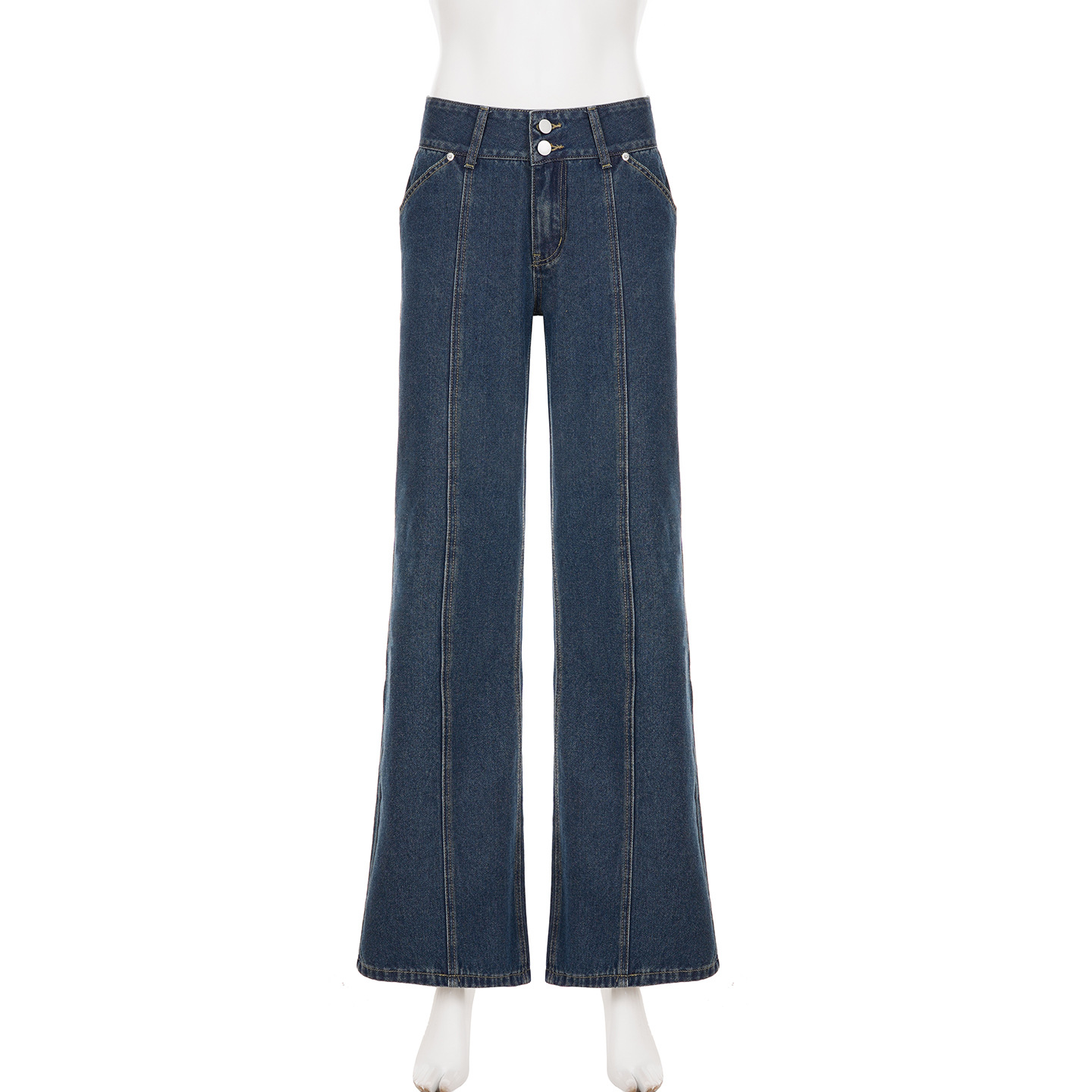 Denim Pants Loose Wide Leg Slimming Design Low Waist Flared Long Pants for Women