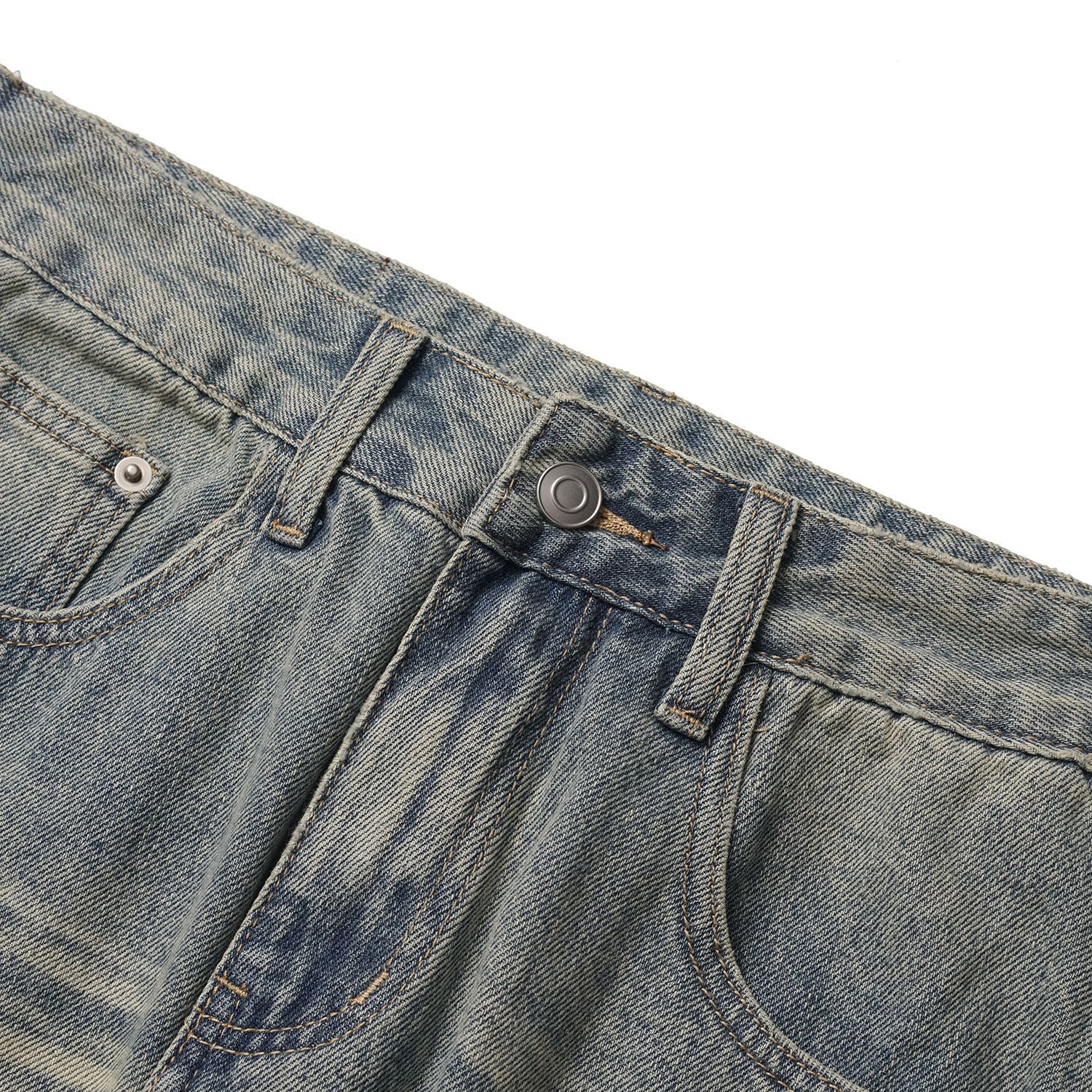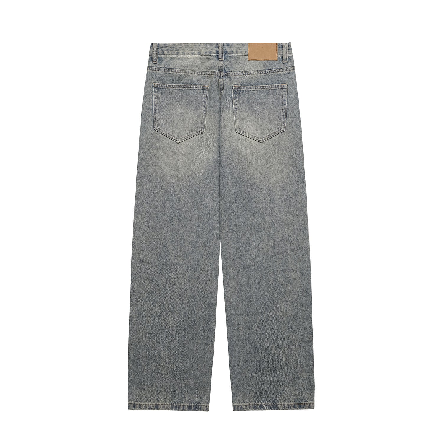 Distressed Cat-Whisker Relaxed Straight Leg Wide Leg Jeans Pants