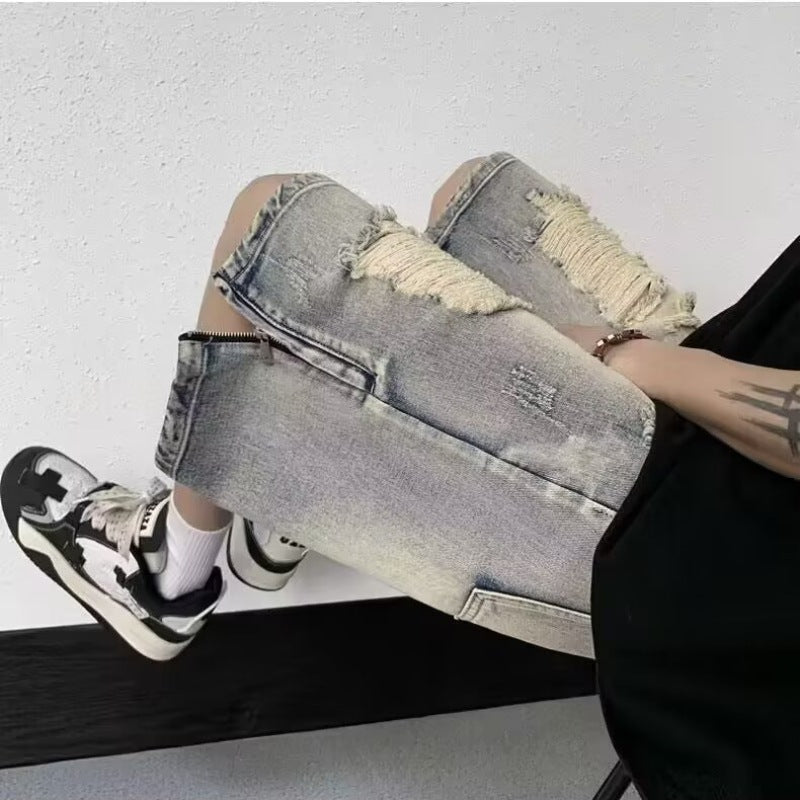 Introducing the Five Point Hole Beggar Jeans Shorts for Men, crafted for those who value both style and comfort. Perfect for summer outings, these denim shorts embody a contemporary edge while ensuring durability.