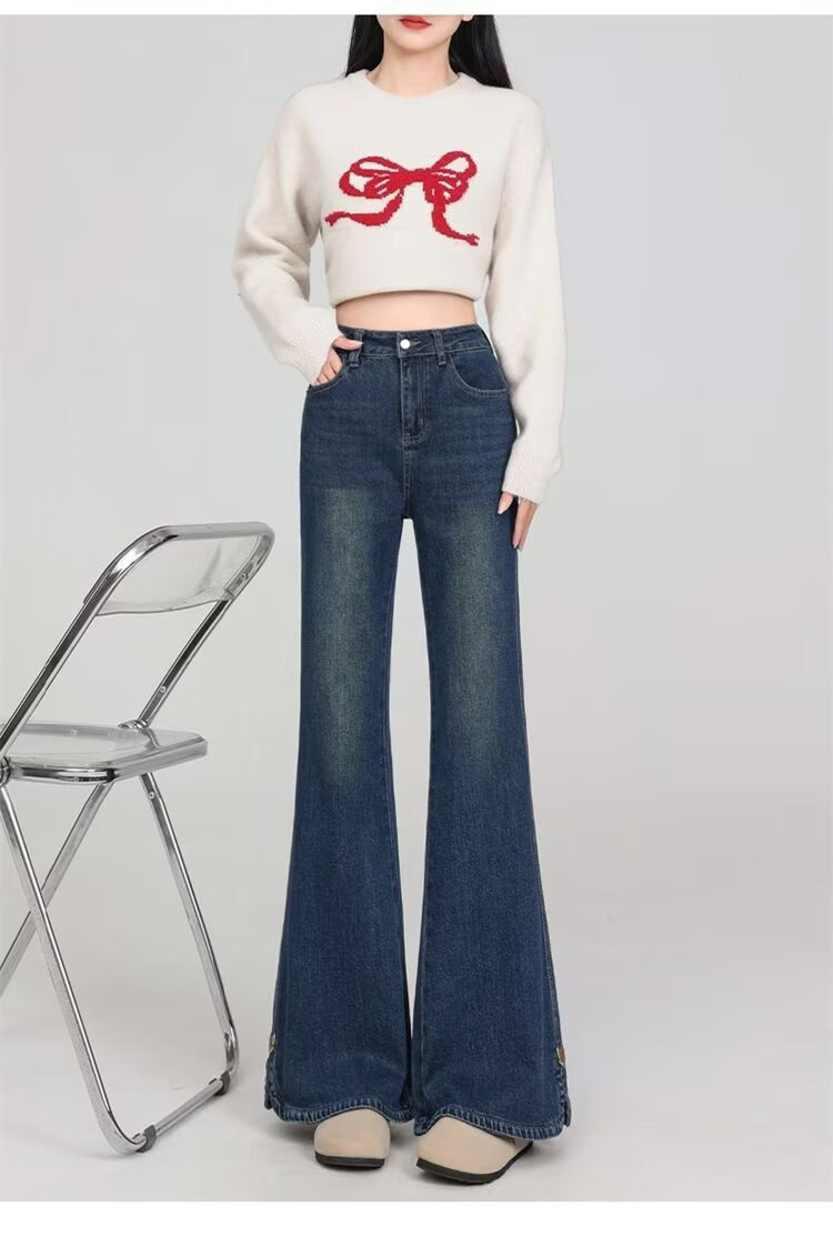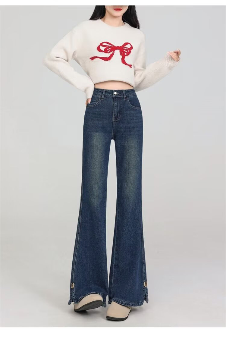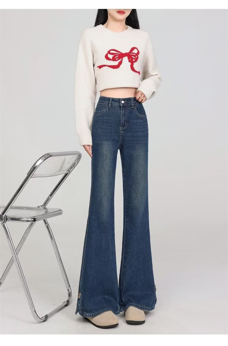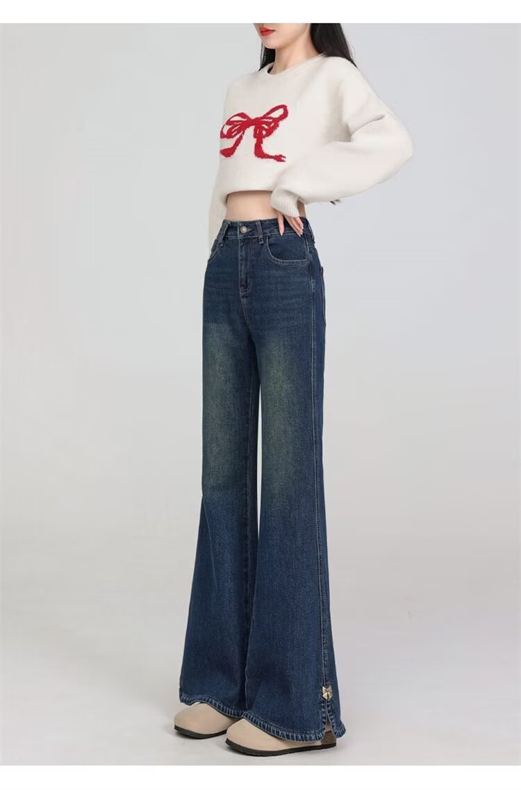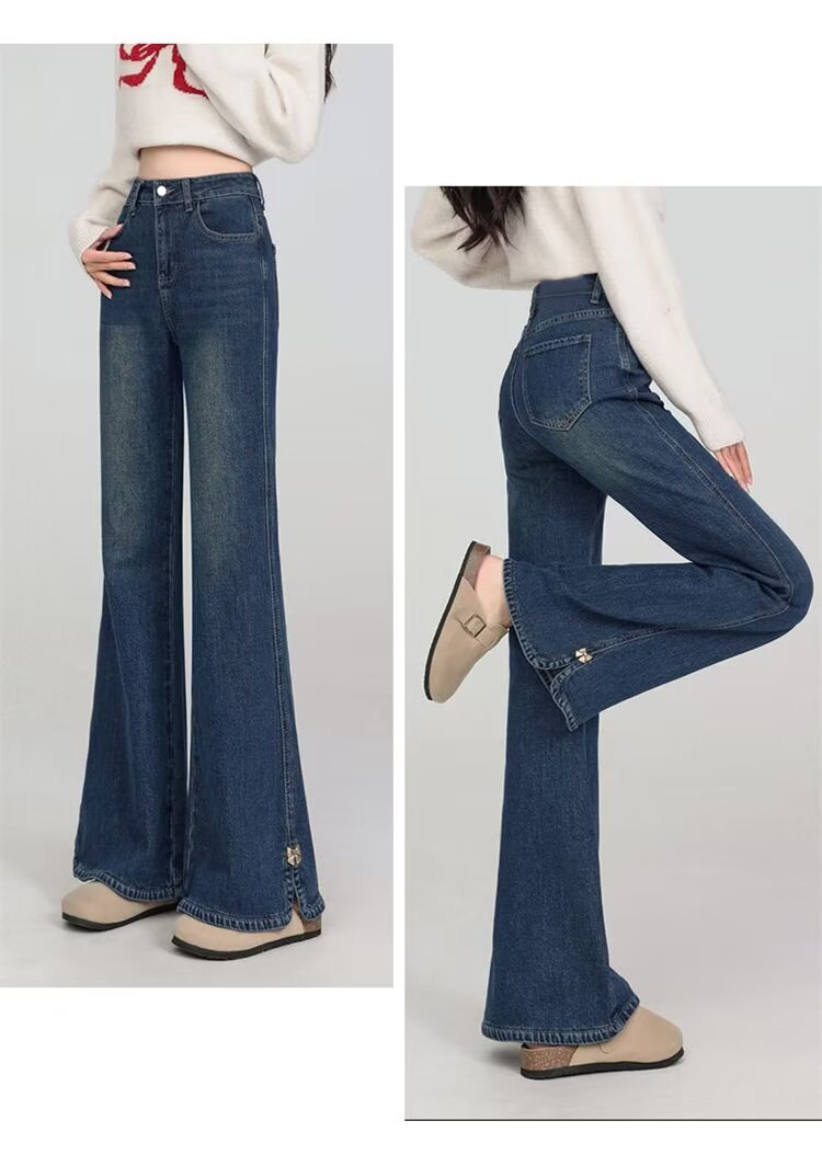 High Street Slit Flared Jeans for Women - High Waist Slim Korean Style Denim Pants
