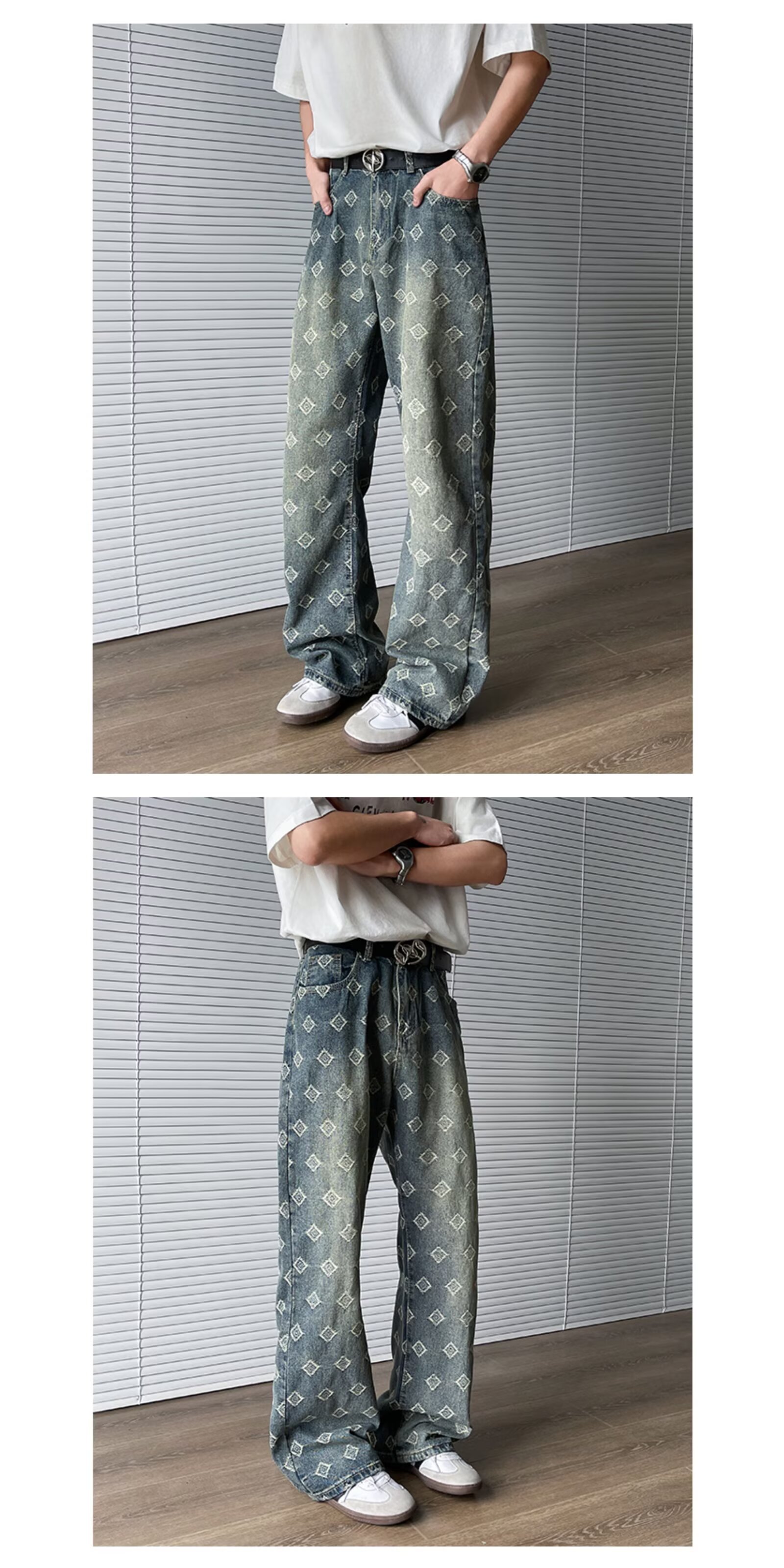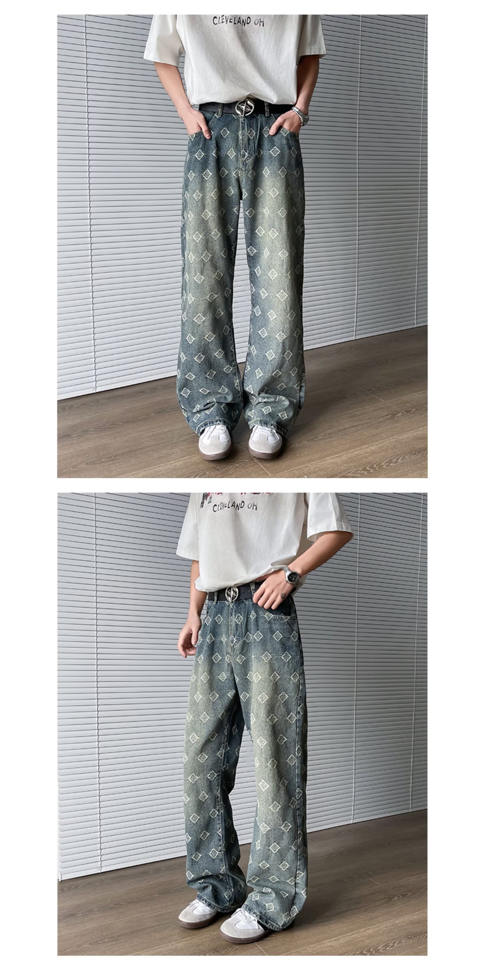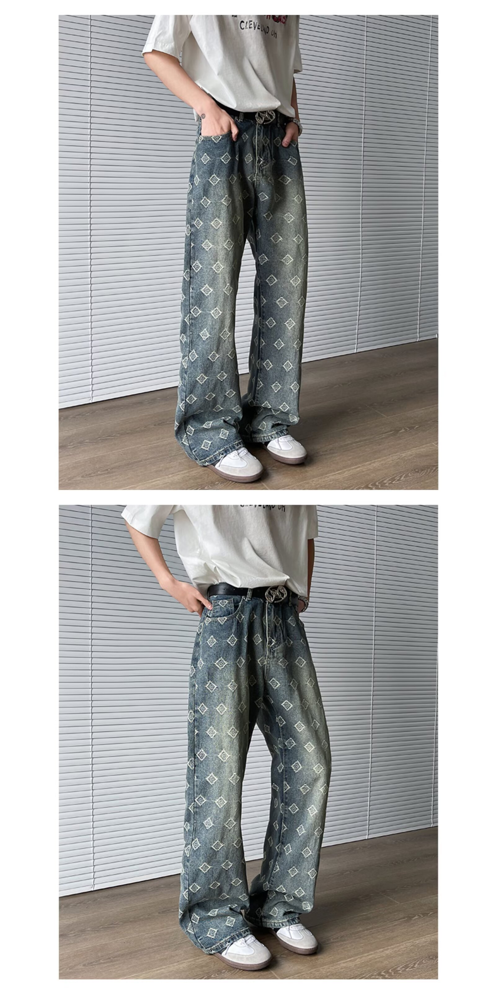 Jacquard Full Print Curved Knife Jeans for Men - Premium Japanese Denim