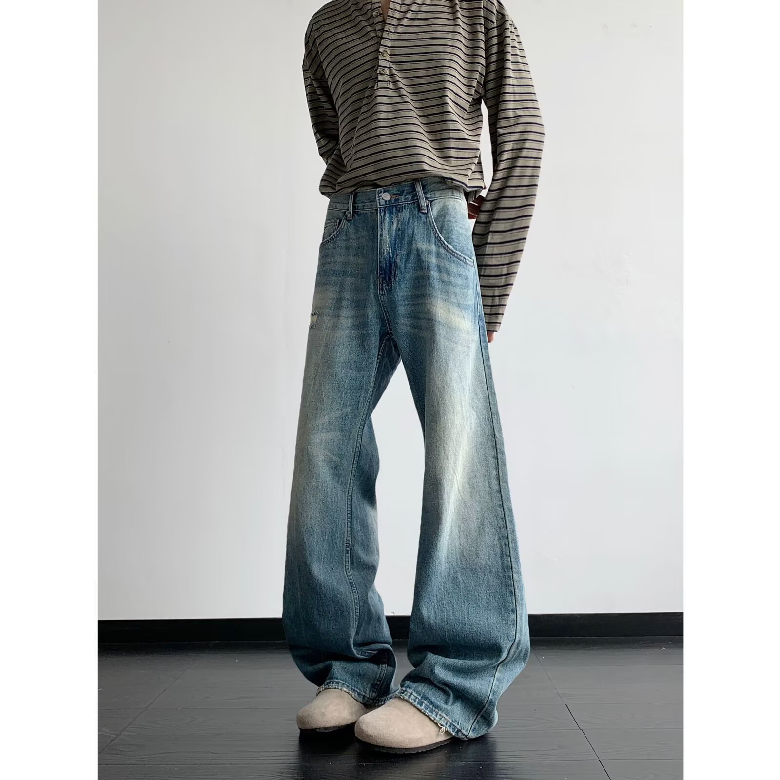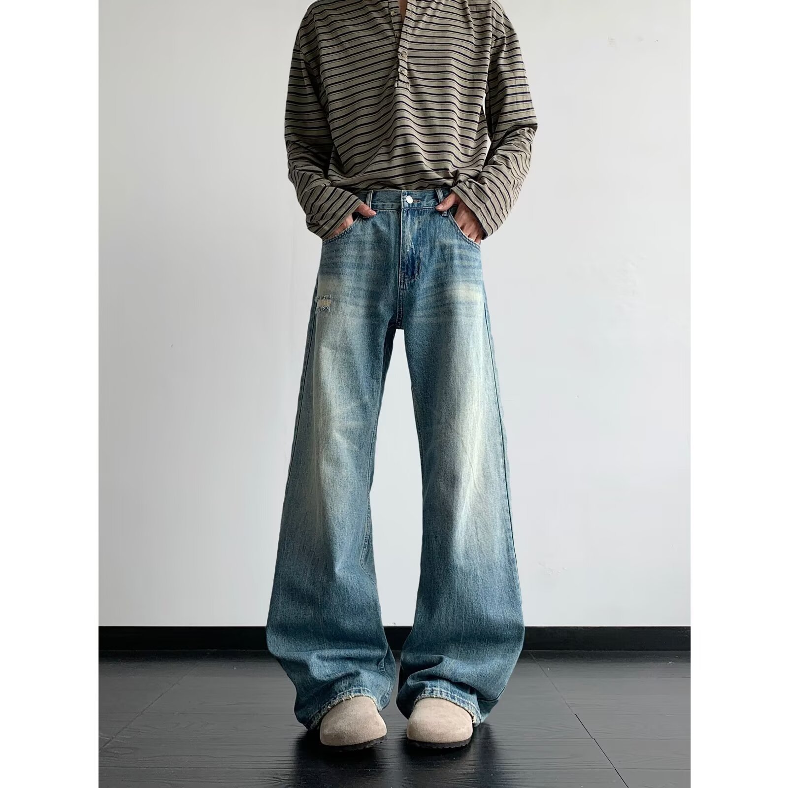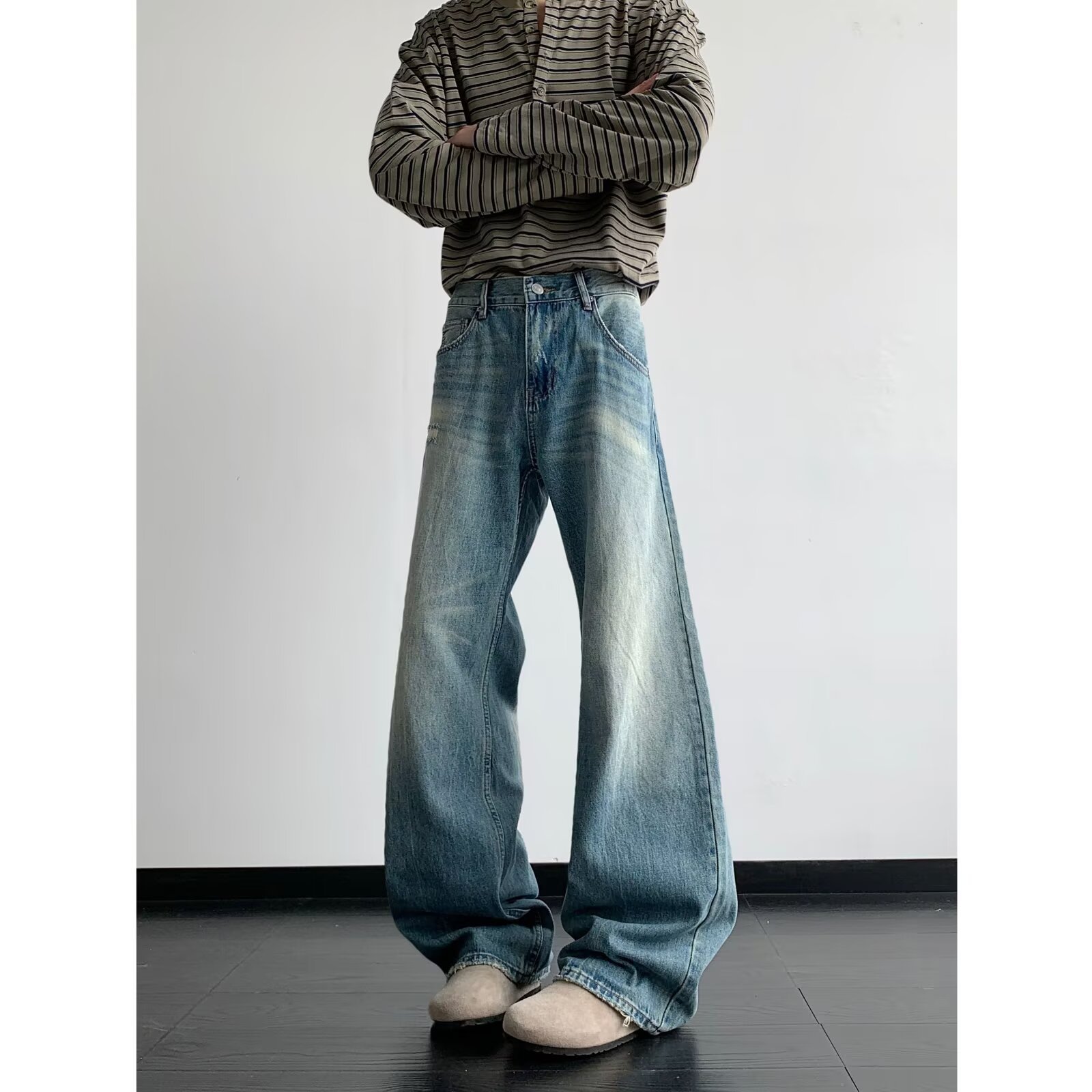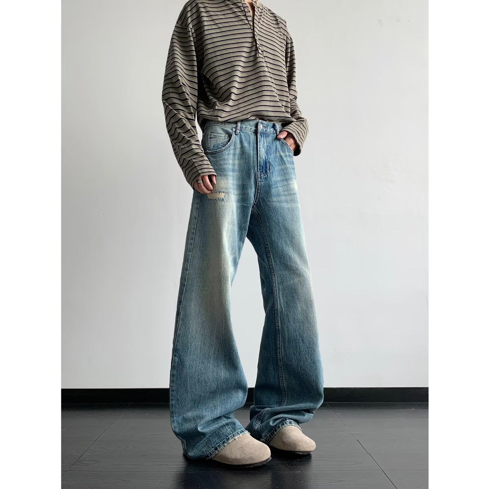 Step into summer with our stylish light blue men's cat whisker washed wide leg casual pants, a perfect blend of comfort and modern aesthetics. Crafted from premium cotton denim, these pants are designed to offer both versatility and a relaxed fit.