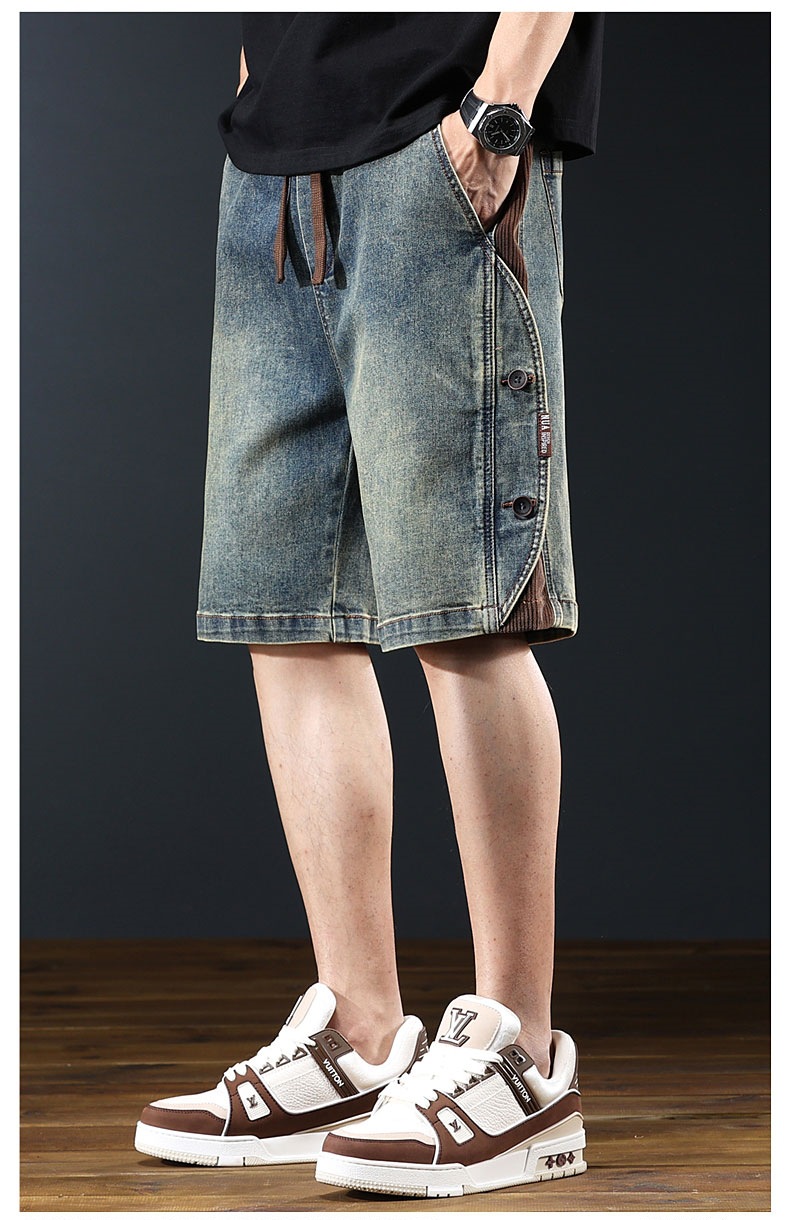 Elevate your summer wardrobe with our Loose Five Quarter Pants, designed for ultimate comfort and style. Crafted from premium blue denim, these mid-length pants feature an elastic waist for a perfect fit that moves with you.