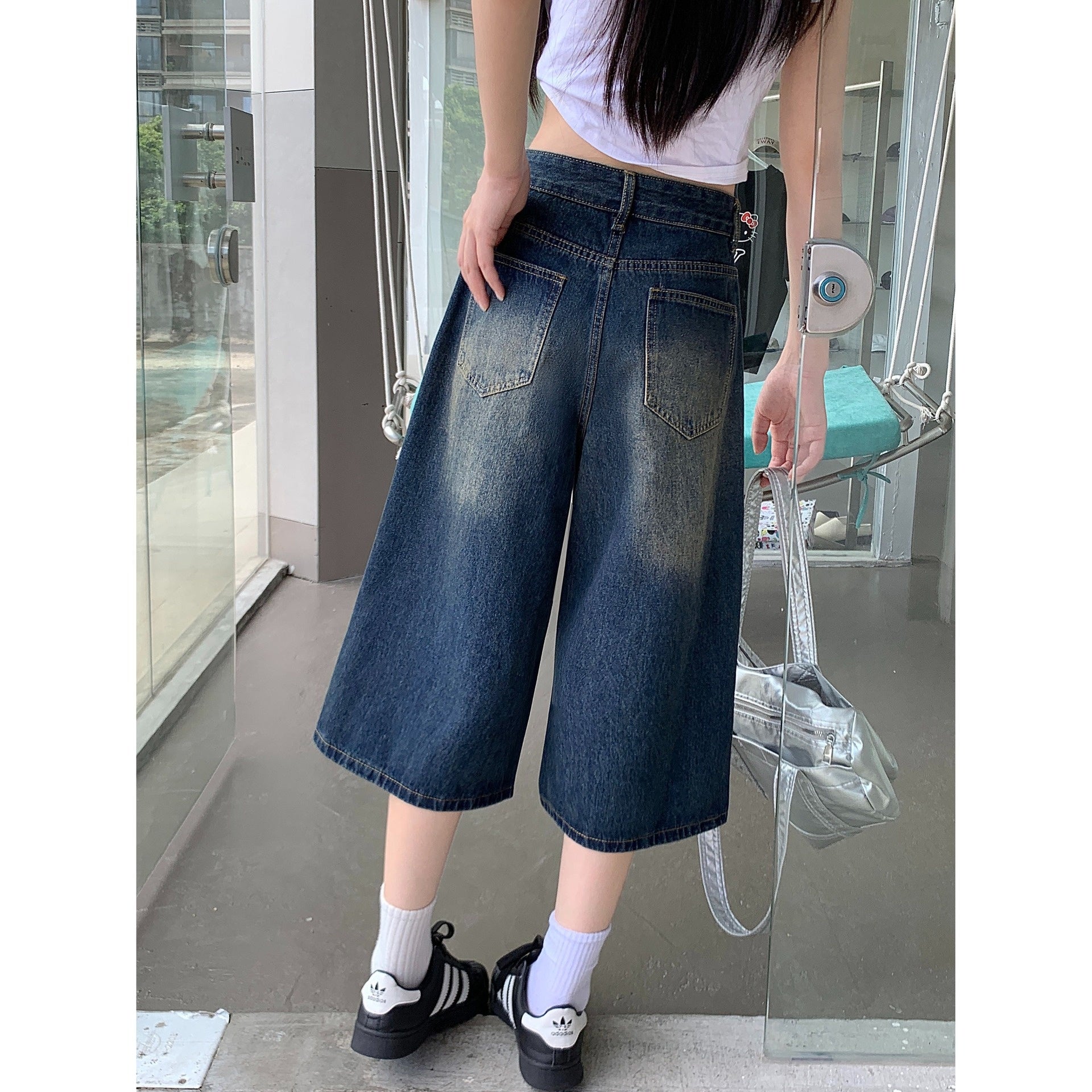 Loose Wide Leg Slimming Retro Straight Leg Mid Length Pants