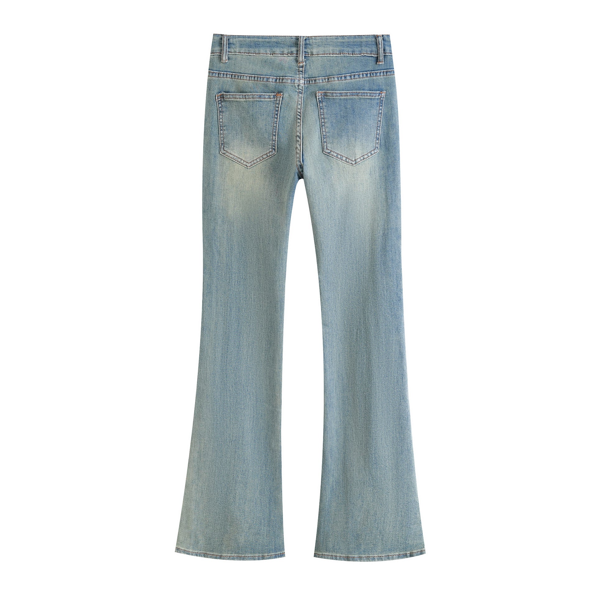 Discover a blend of comfort and style with our Low Waist Button Slim Fit Flared Jeans in Nostalgic Blue. Perfect for those who appreciate modern streetwear infused with classic elegance, these jeans offer a flattering fit that enhances your silhouette.
