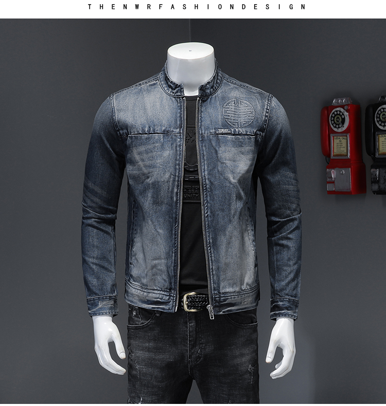 Men's Casual Zipper Washed Denim Jacket - Stand Collar for Autumn and Spring