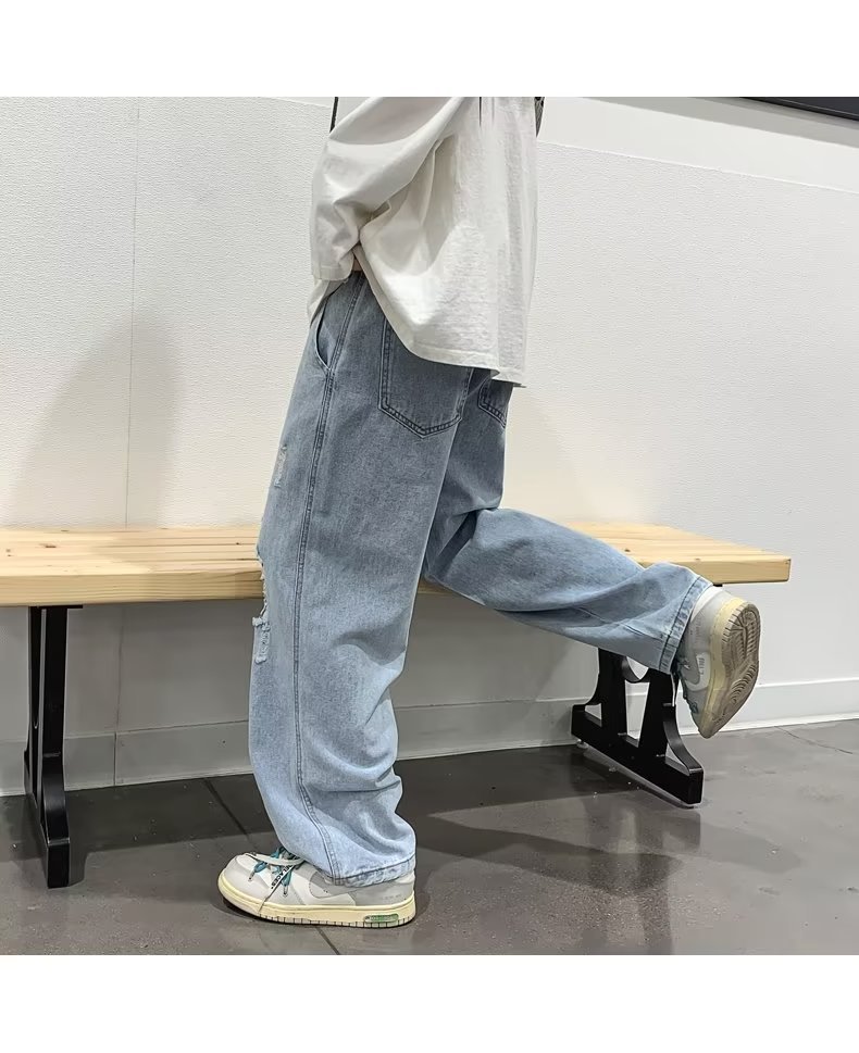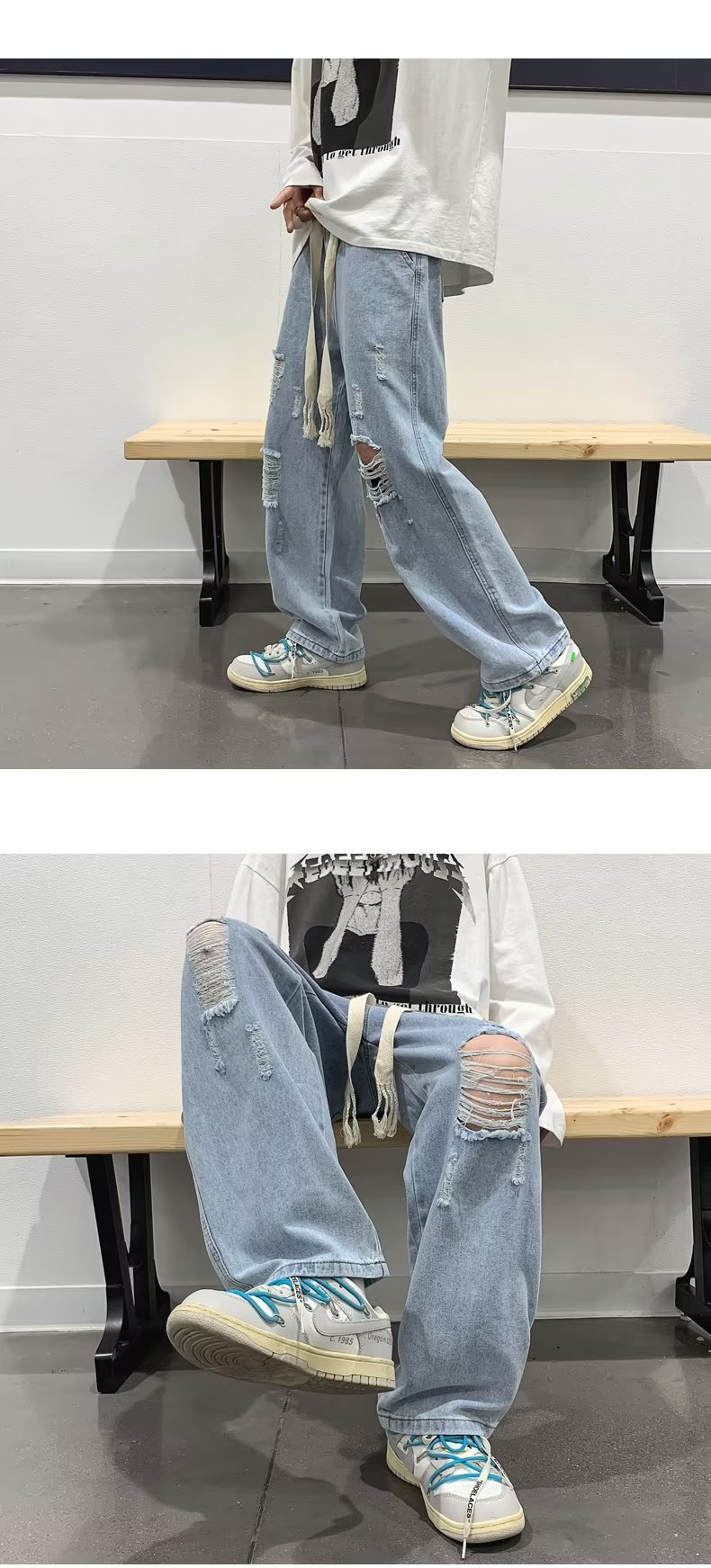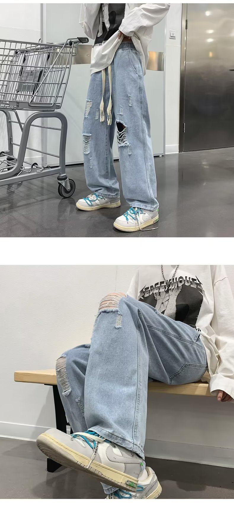 Men's Ripped Summer Jeans - Thin Fit Loose Straight Wide Leg