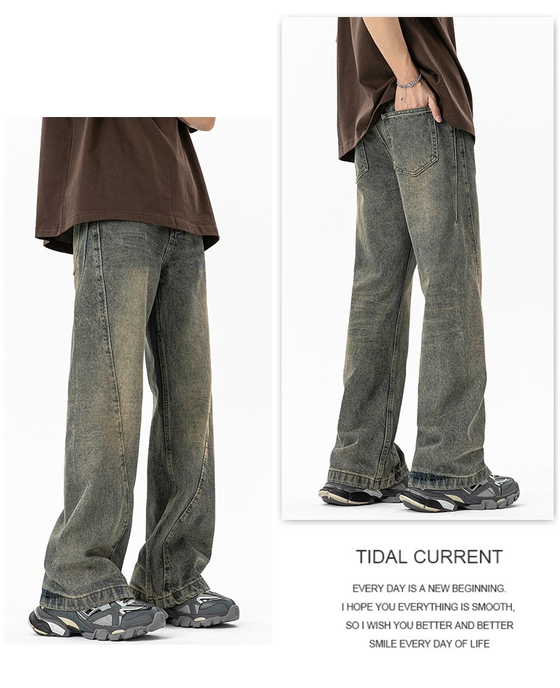 These denim pants feature a cleanfit cut with distressed detailing that brings a laid-back yet fashionable vibe. The micro flare adds a unique touch, making these pants a versatile addition to your wardrobe.