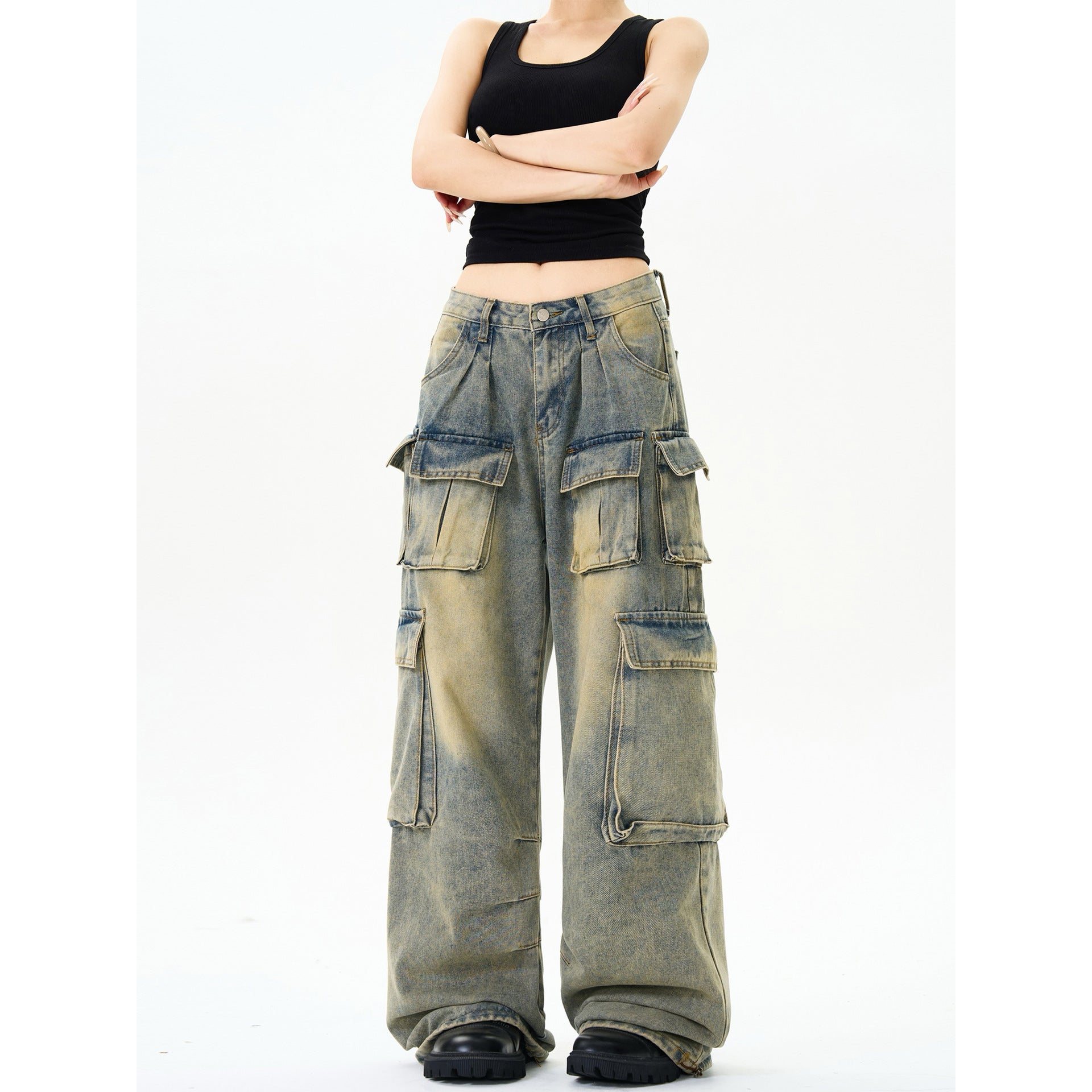 Multi Pocket Loose Wide Leg Pants - Stylish and Functional Denim
