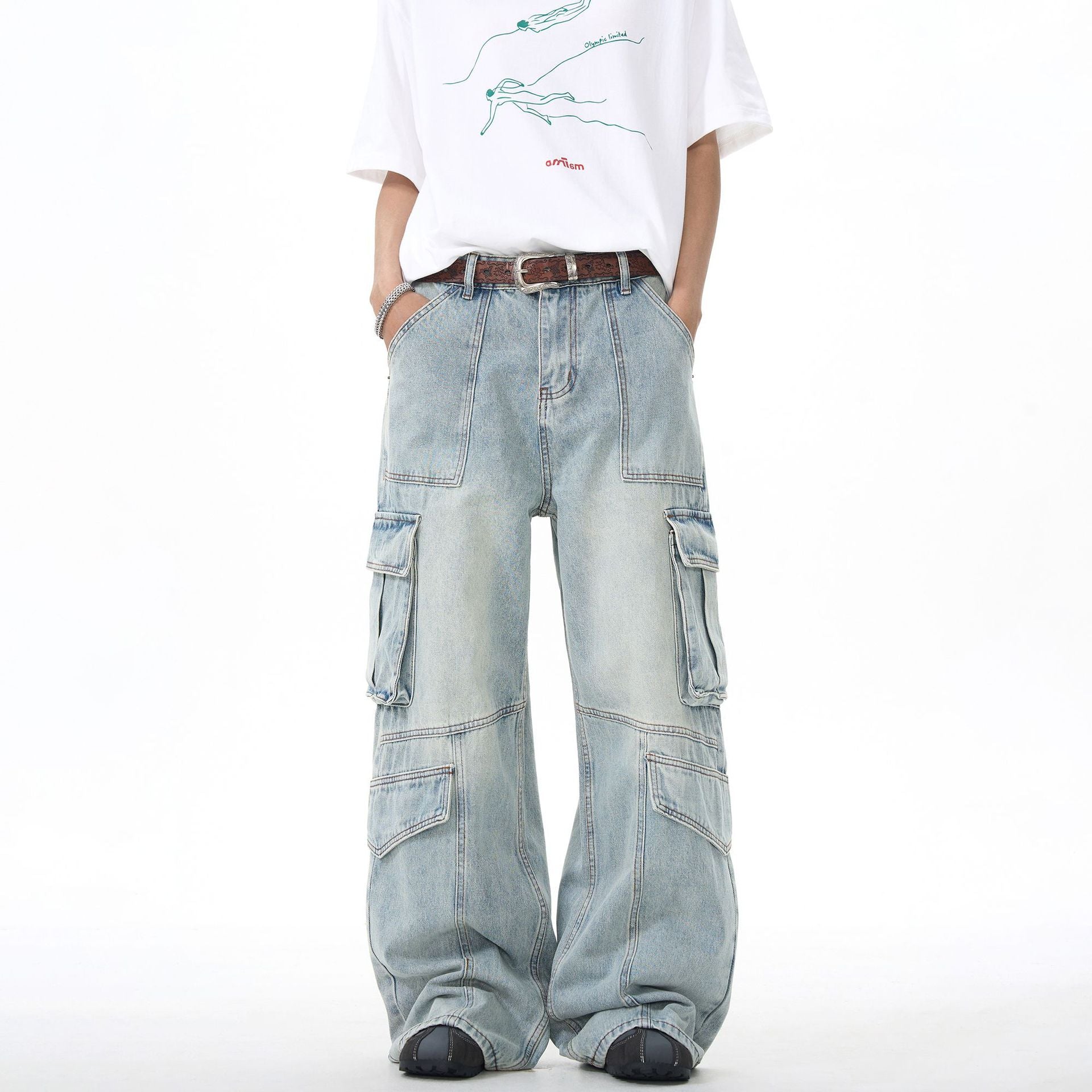 Old Denim Loose Straight Leg Wide Leg Floor Length Pants