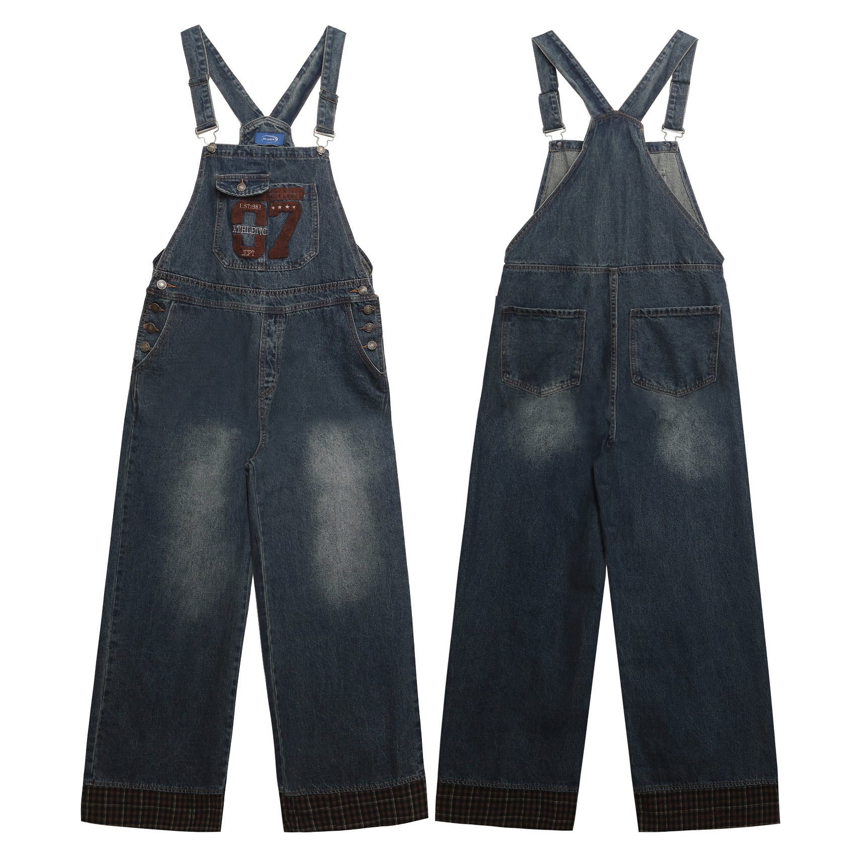 Retro Letter Embroidery Washed Denim Overalls for Unisex - Loose Slimming Jumpsuit