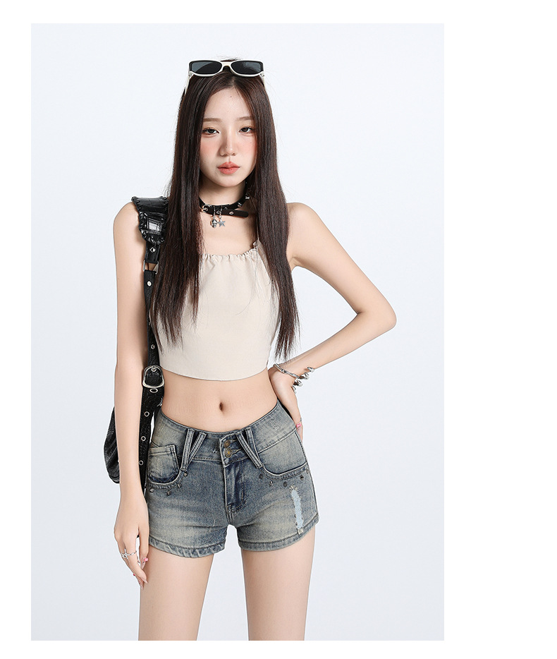 Retro Rivet Low Waist Denim Shorts - Women's Summer Slim Fit Hot Pants