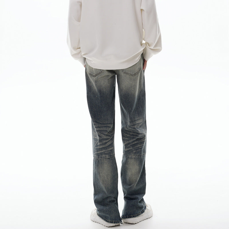 Retro Washed Tie-Dye Straight Blue Jeans - Trendy Unisex Design