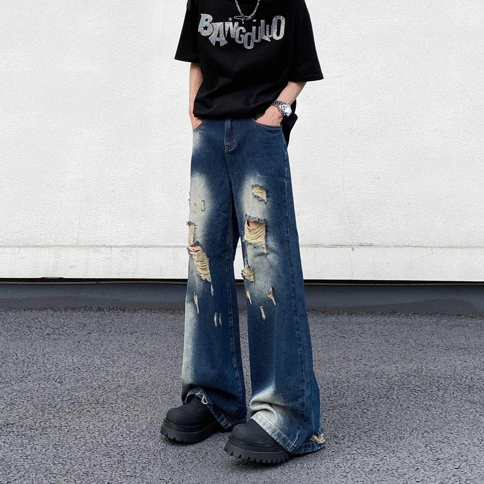 Elevate your casual wardrobe with our Ripped Blue Denim Loose Straight Casual Pants, designed for comfort and style. Perfect for those laid-back days, these pants bring a touch of modern flair to your outfit.