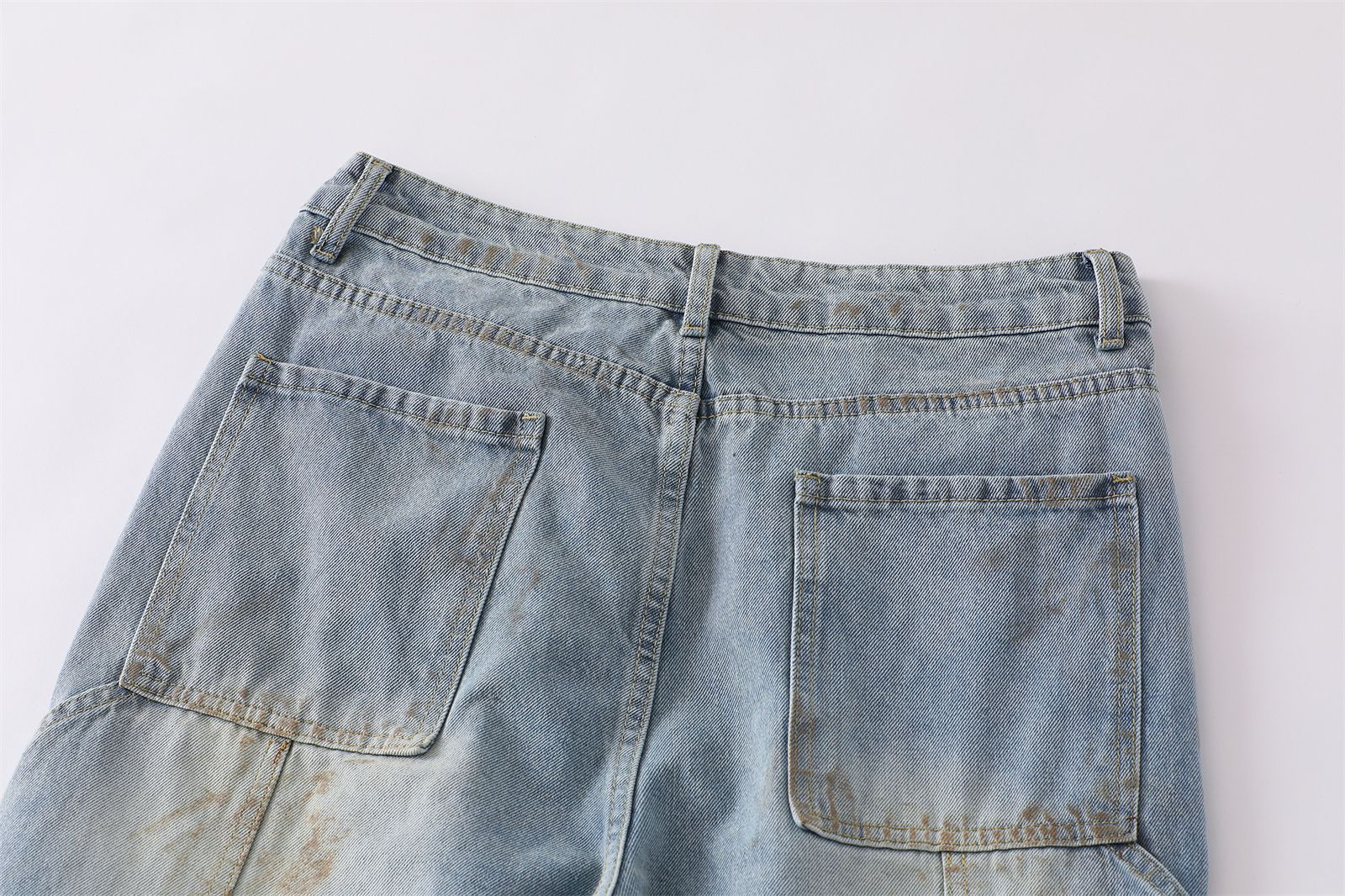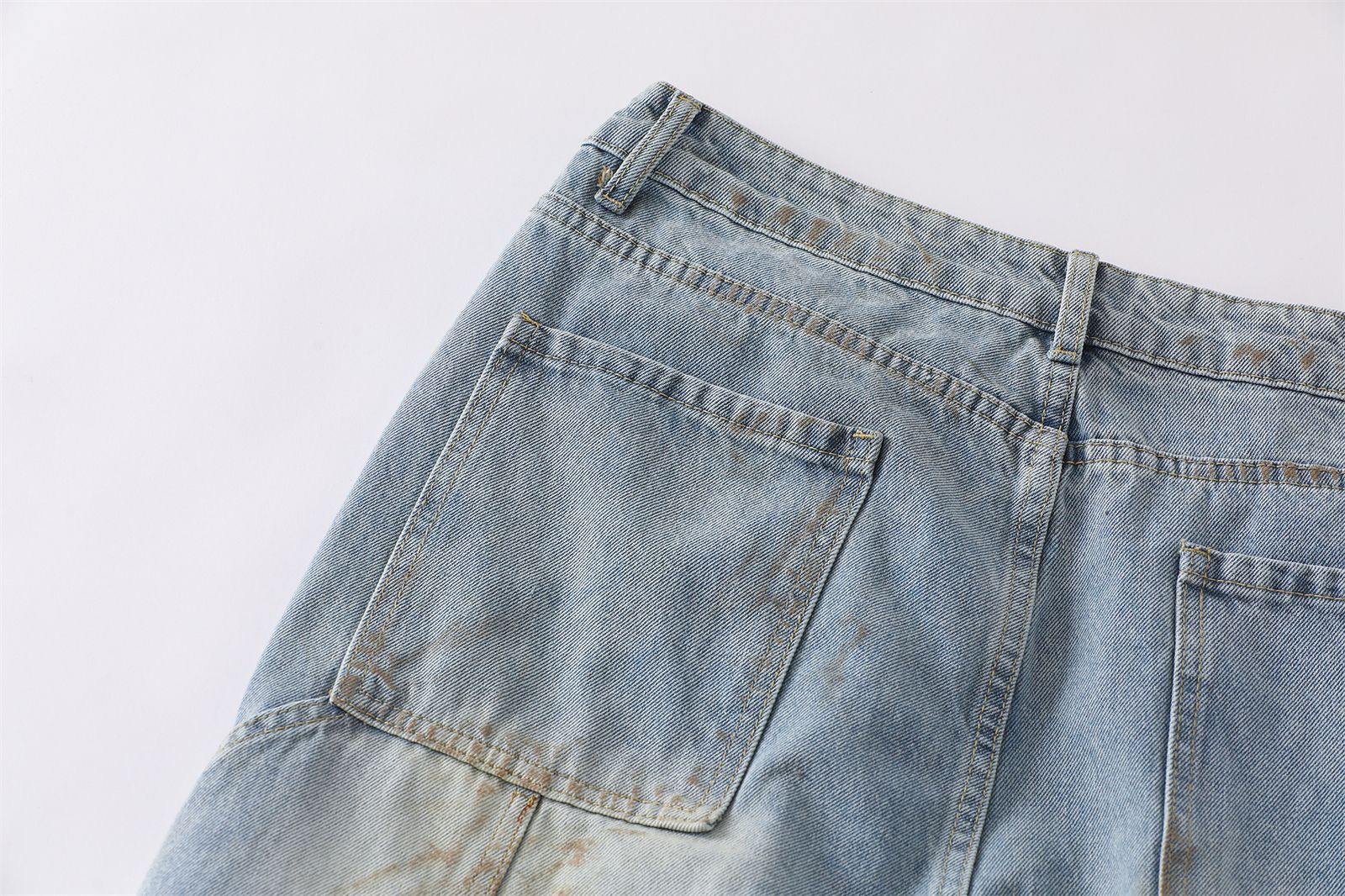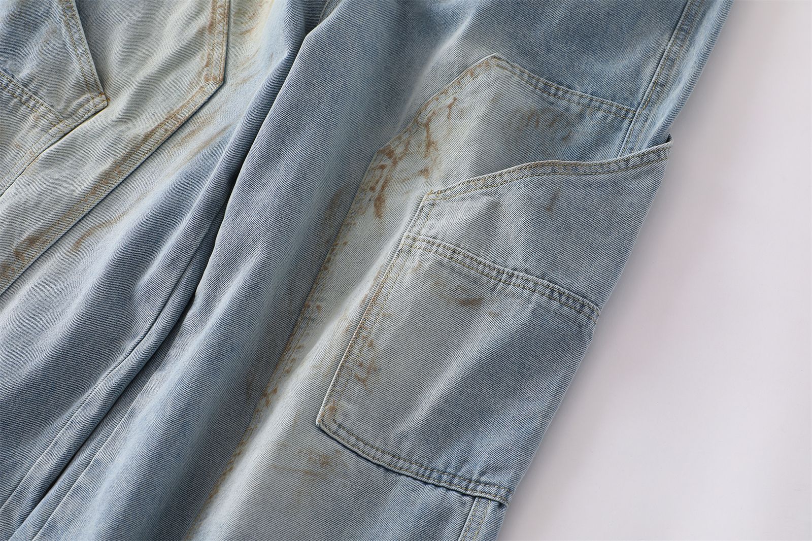 Ripped Denim Pants Tie Dye Wash Loose Straight Leg Pants