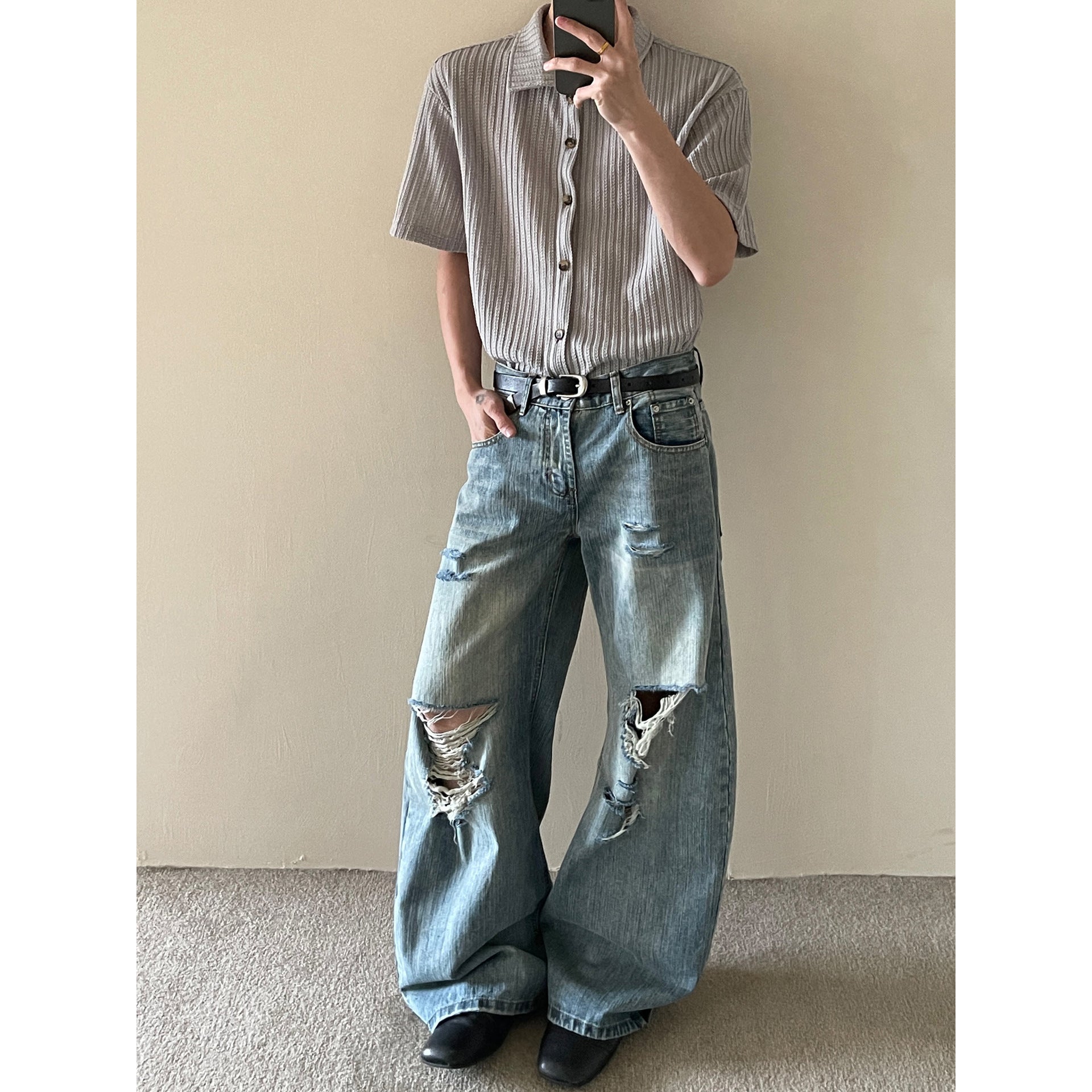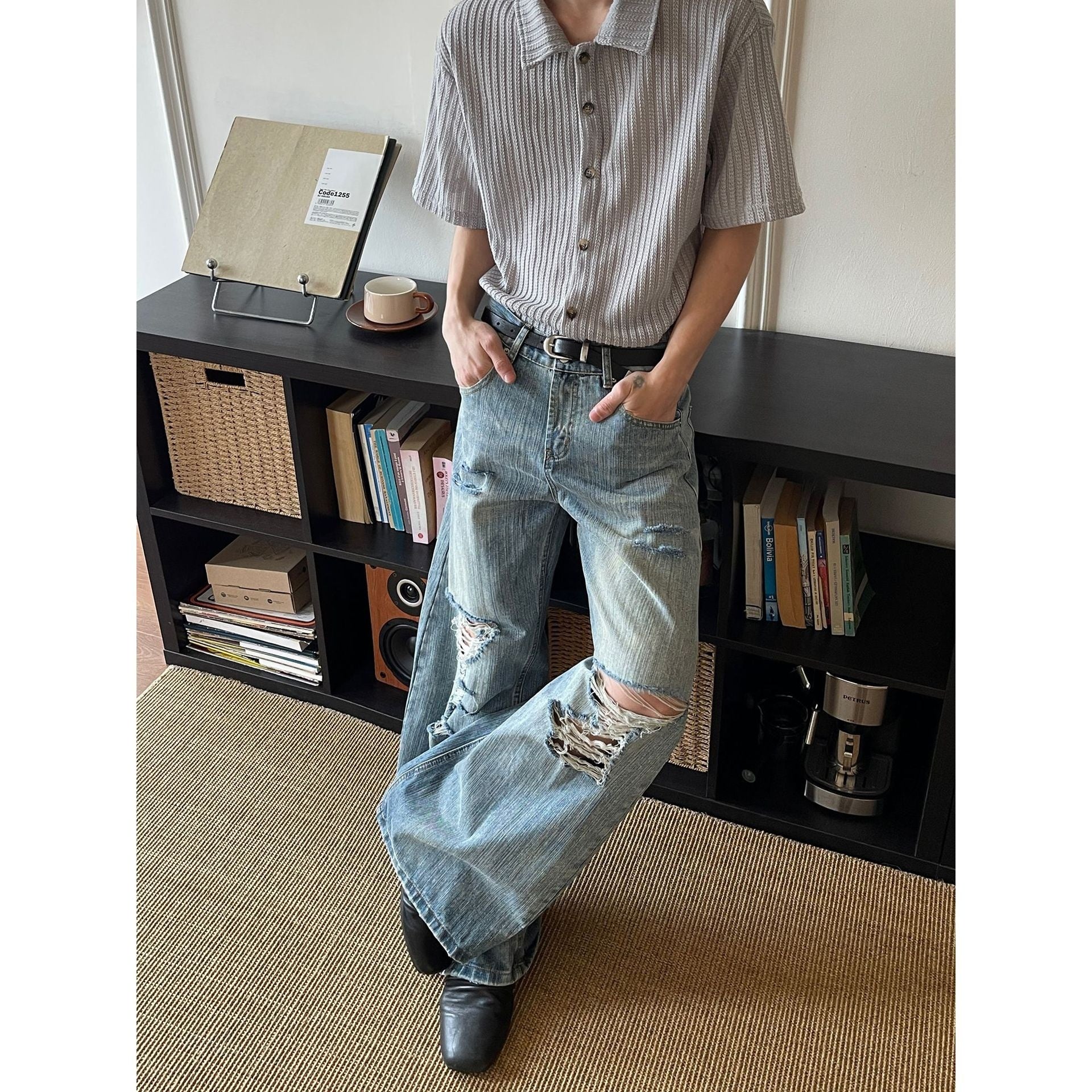 Ripped Denim Wide Leg Loose Pants - Versatile Summer Style