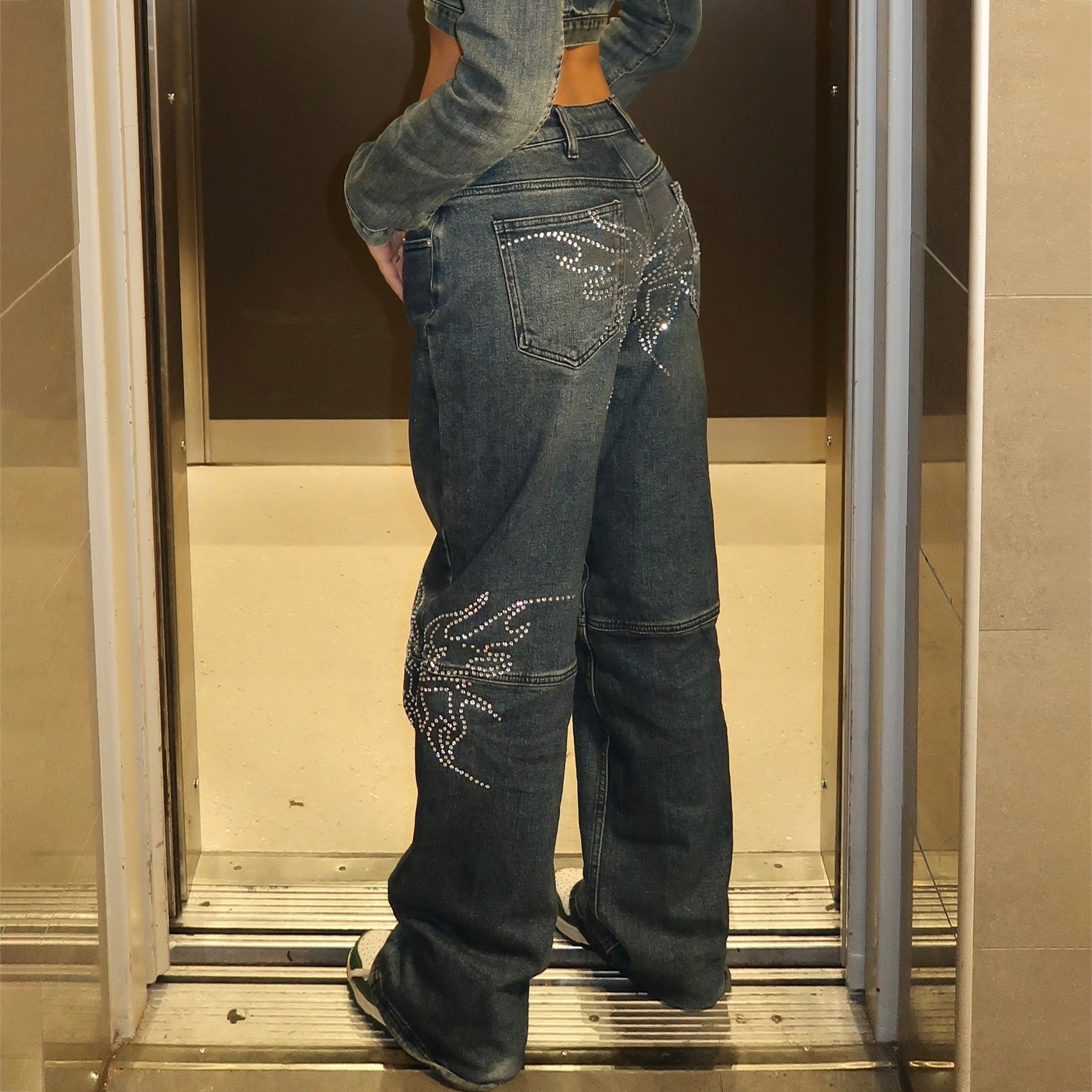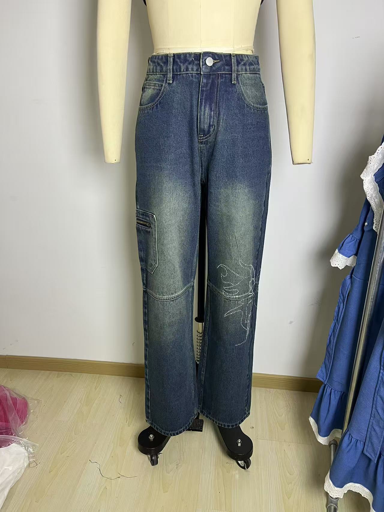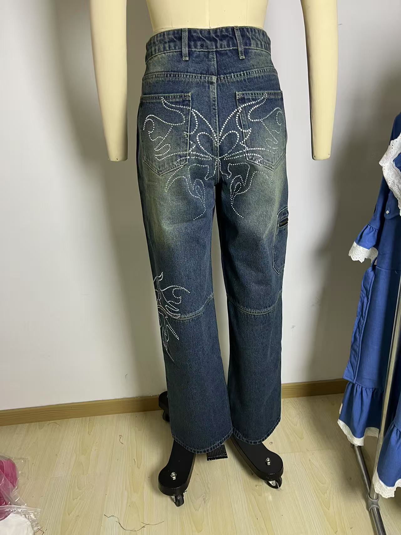 Introducing the Spicy Girl's Winged Rhinestone Washed Jeans, a must-have for every trendsetter looking to elevate their street fashion game. Crafted with care, these jeans blend modern aesthetics with timeless comfort.