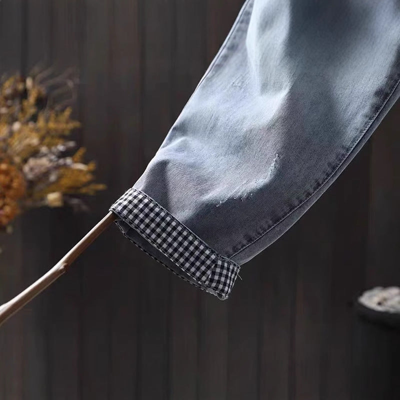 Spring New Embroidered Cotton Washed Soft Denim Harem Pants