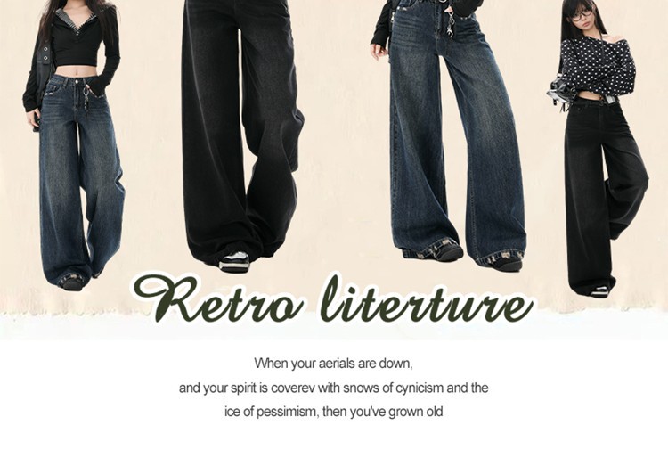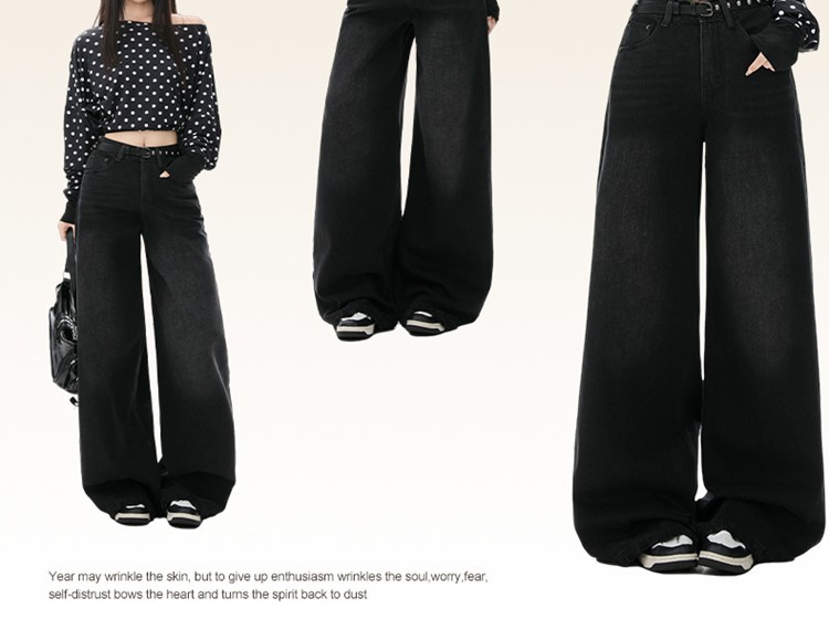 Style Black Gray High Waist Jeans for Women - Loose Slim Straight Leg Wide Leg Long Pants