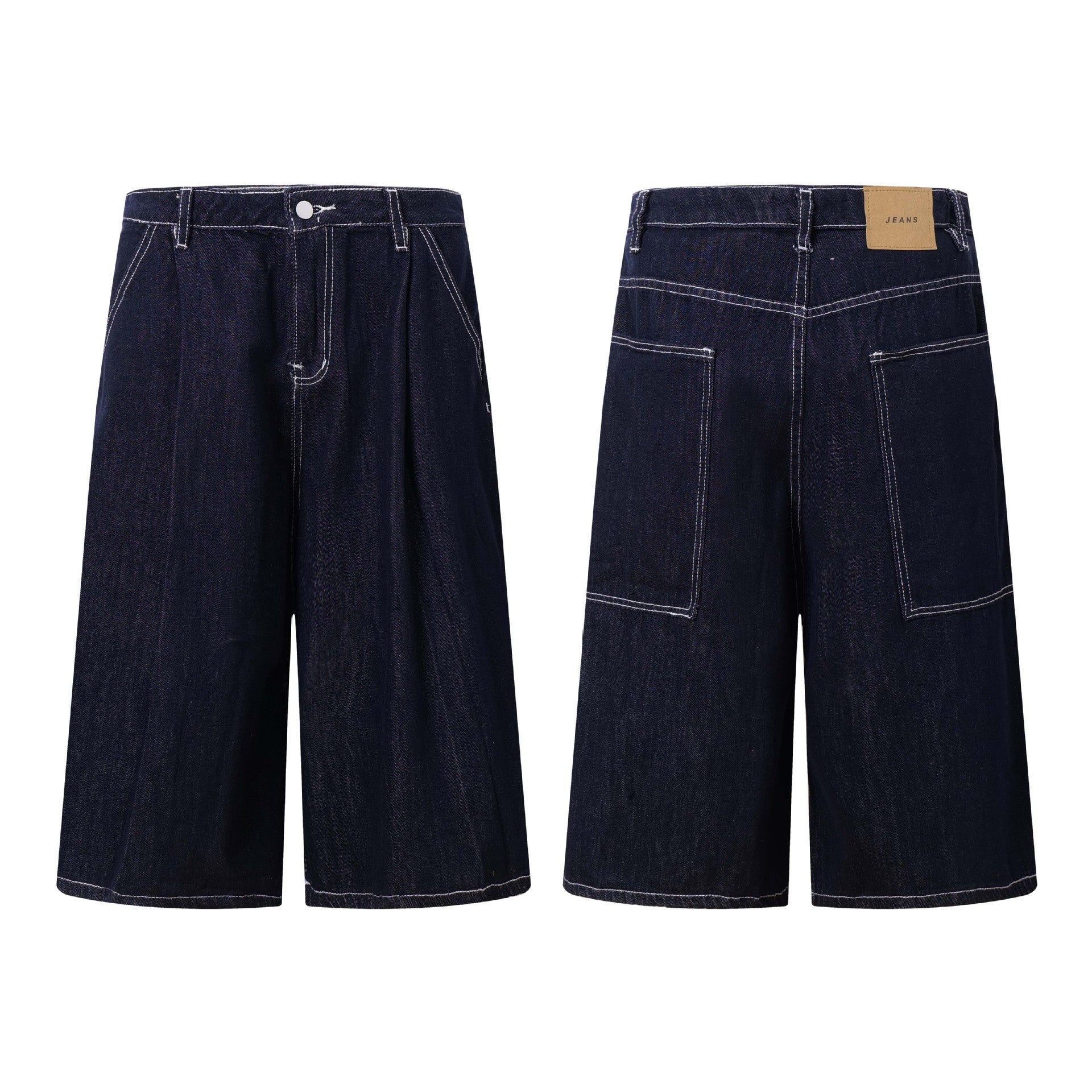 Unisex Loose Wide-Leg Stitched Denim Shorts - Premium Streetwear