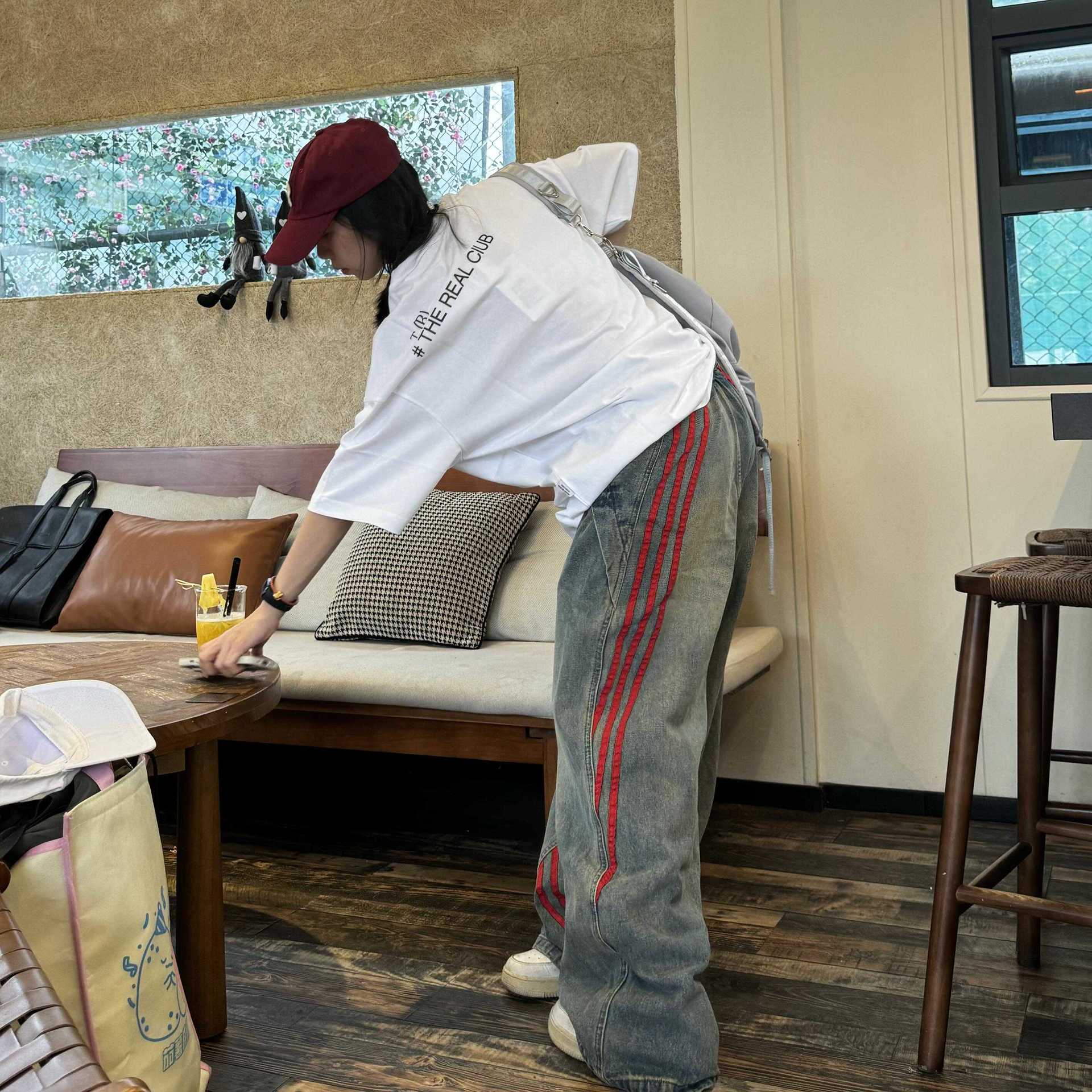 Introducing our Vintage Denim Straight Leg Wide Leg Pants, a perfect blend of style and comfort. These pants bring a modern twist to classic denim with their contrasting side stripes and exquisite craftsmanship.