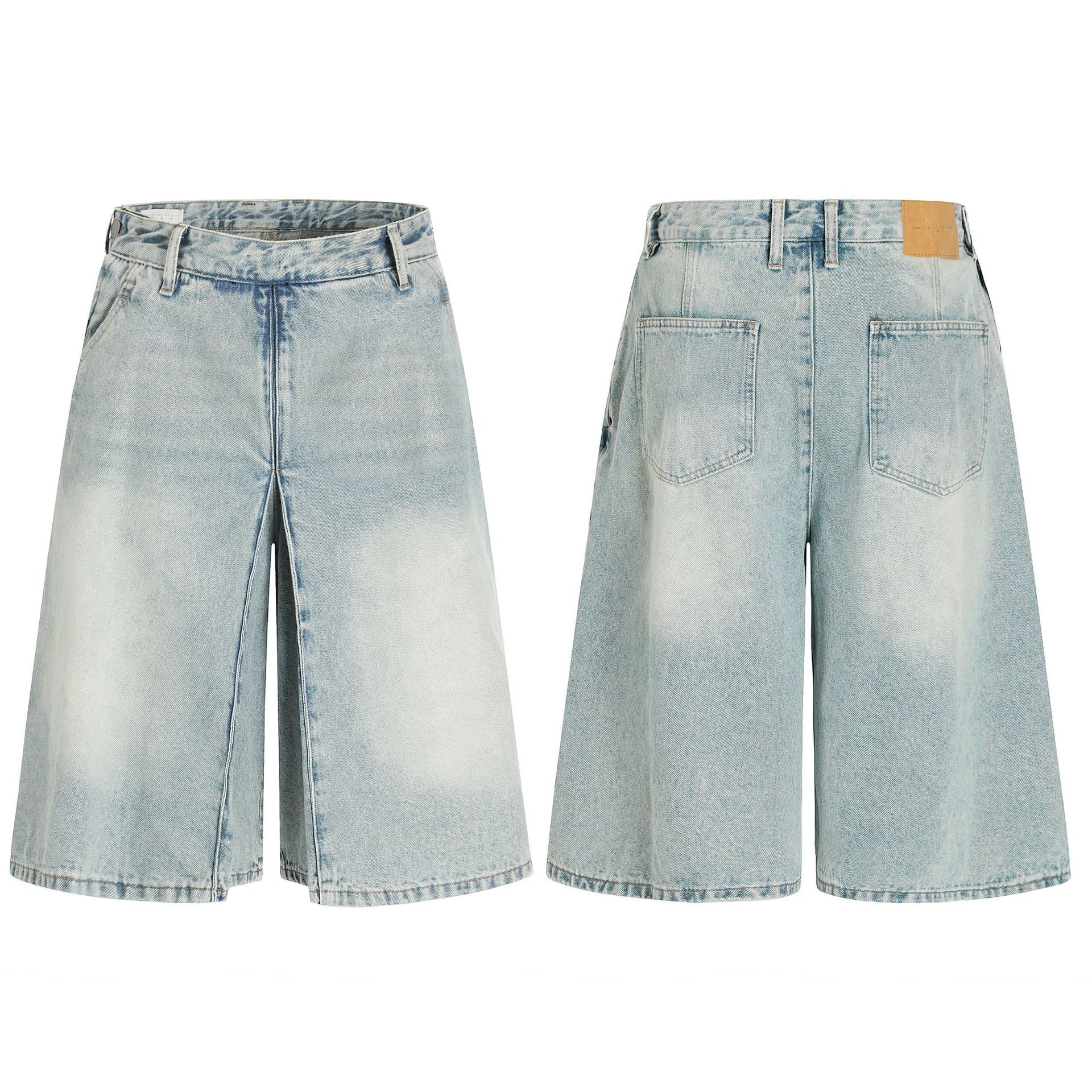 Washed Blue A-Line Straight Loose Denim Shorts for Men and Women