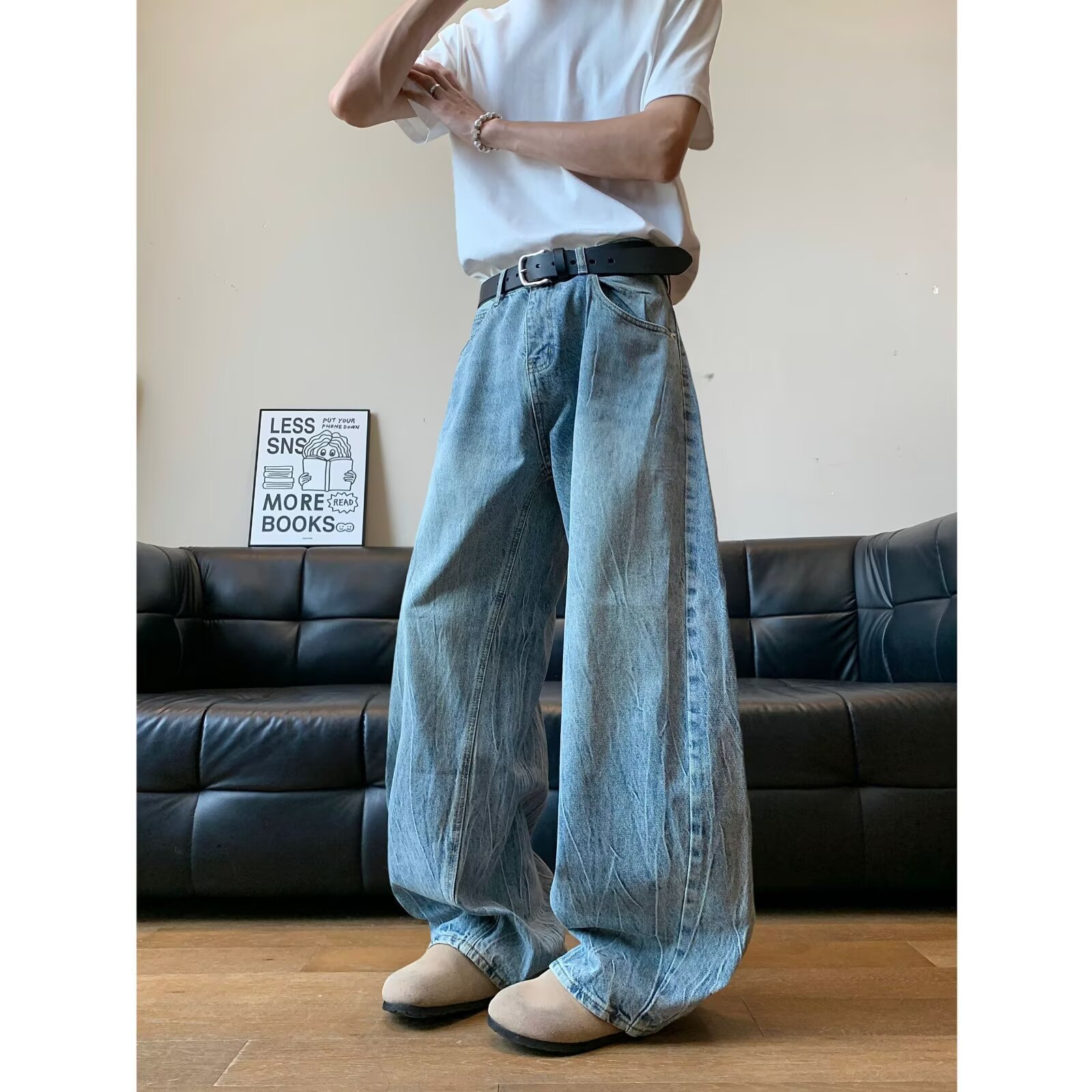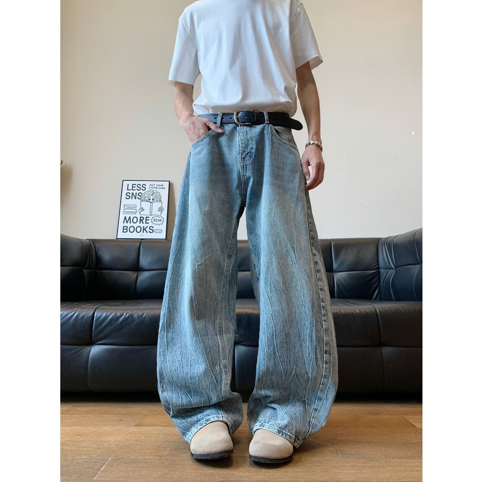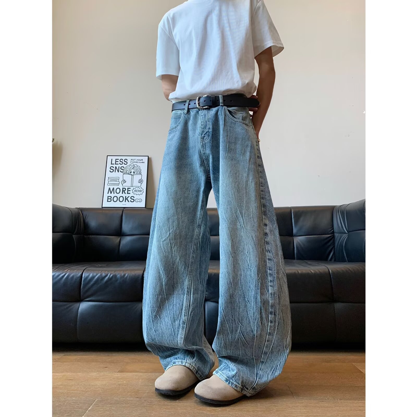 The Washed Curved Knife Denim Casual Wide Leg Banana Pants are not only a statement piece but also an essential addition to your wardrobe. Crafted with meticulous attention to detail, these pants blend comfort with a modern, relaxed fit, making them suitable for a variety of occasions. Whether paired with a simple tee or a stylish shirt, they offer versatility and an effortless look.