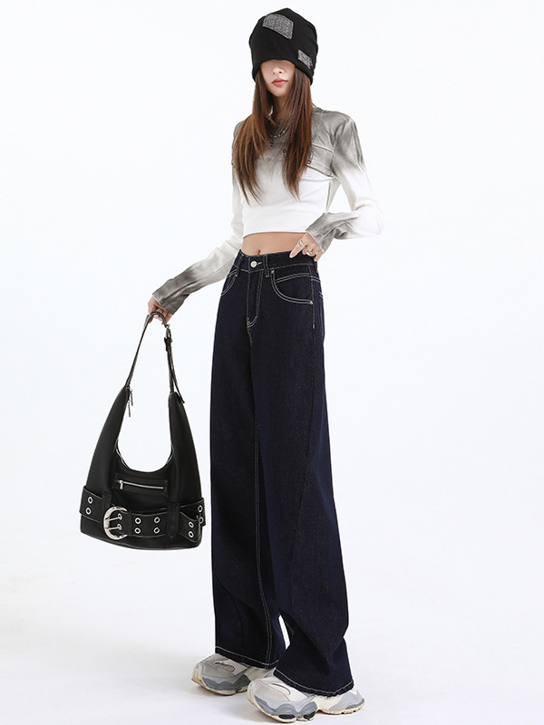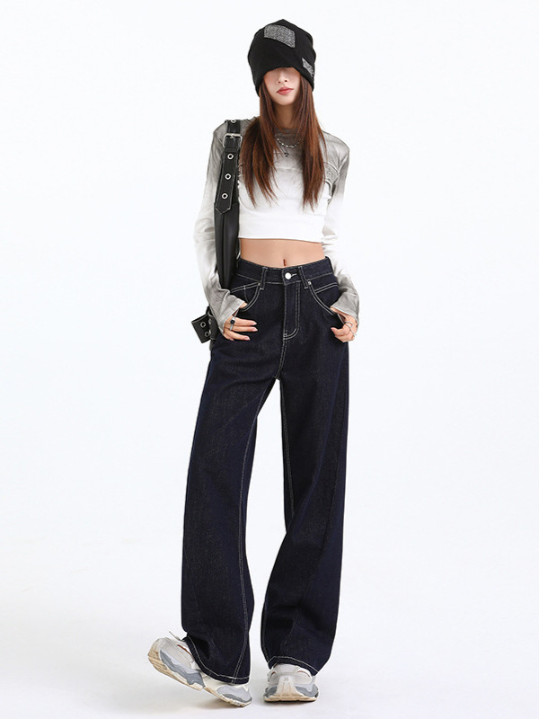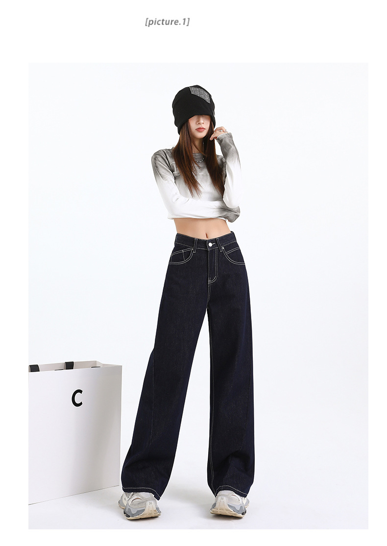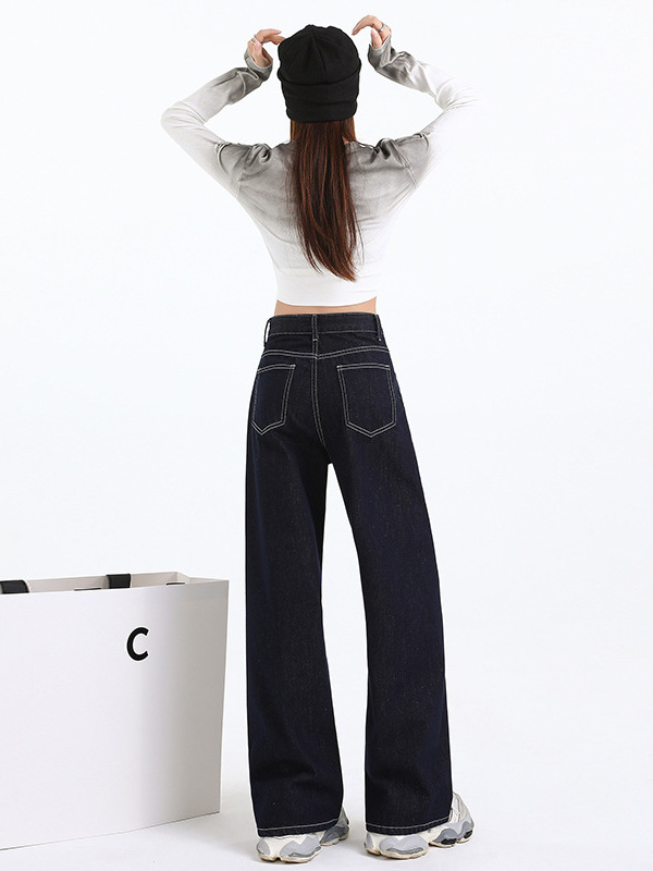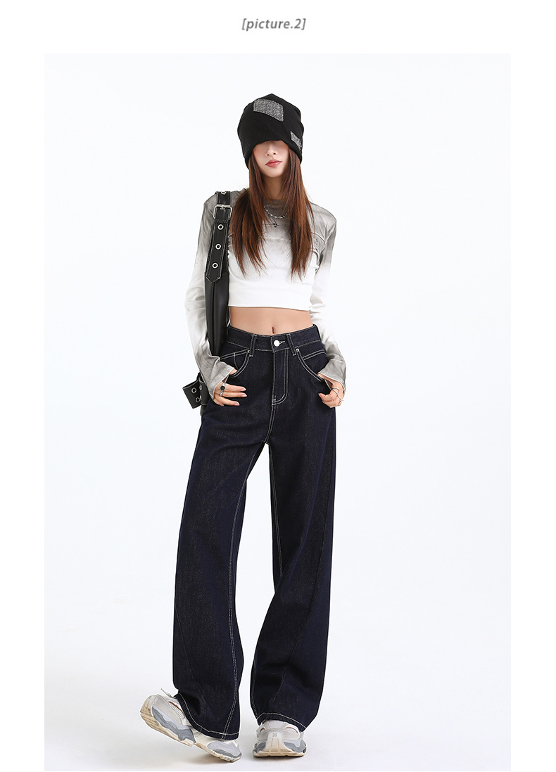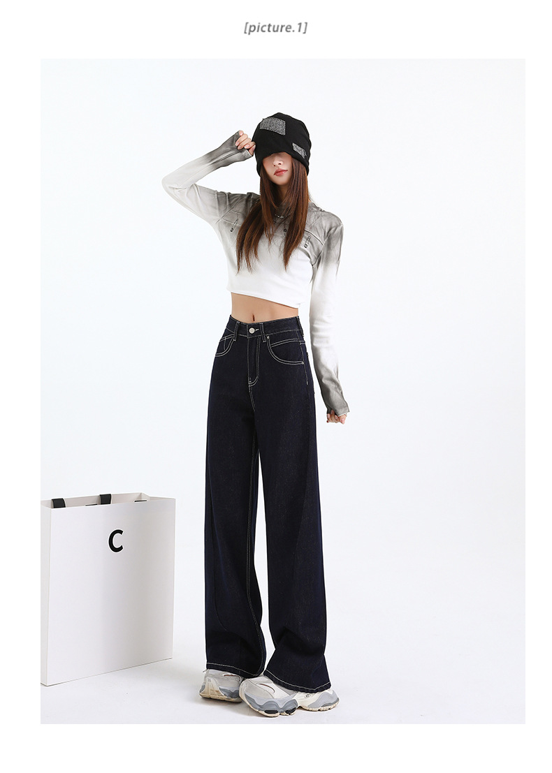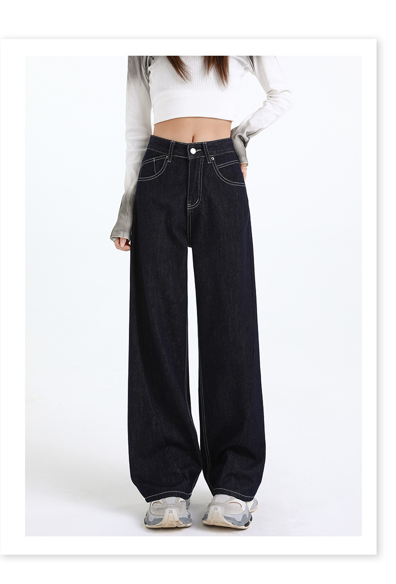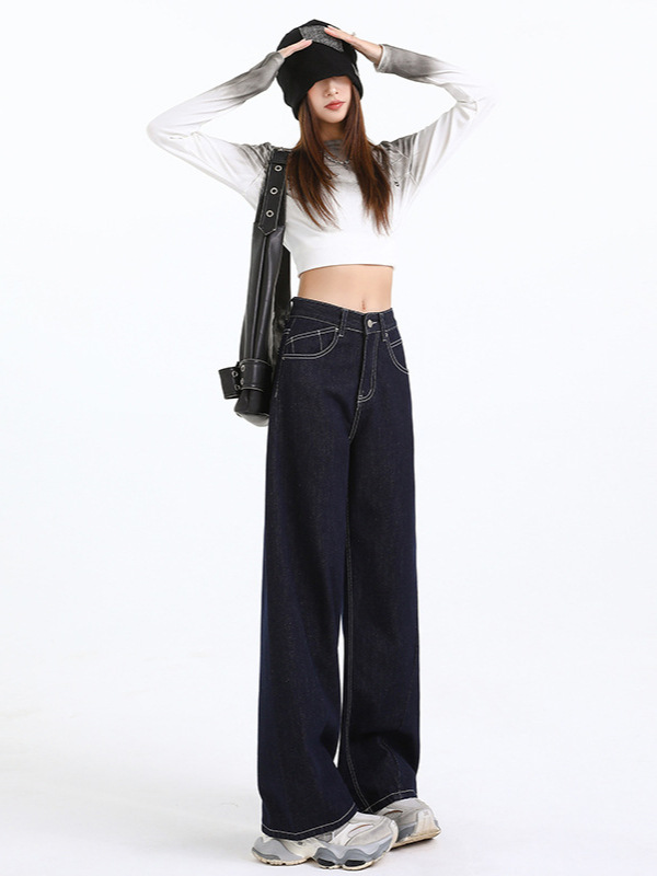 Elevate your wardrobe with our Women's Dark Blue Straight Loose Narrow Version Floor-Length Wide-Leg Long Pants, crafted from high-quality Japanese denim. These pants combine elegance with comfort, making them perfect for any occasion.