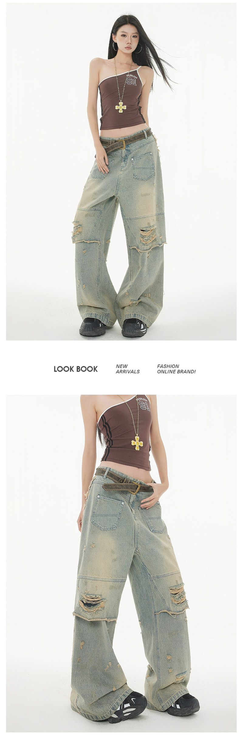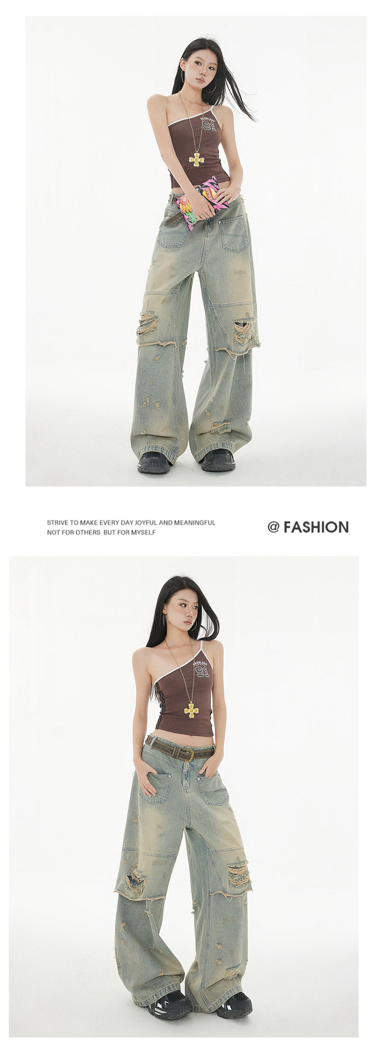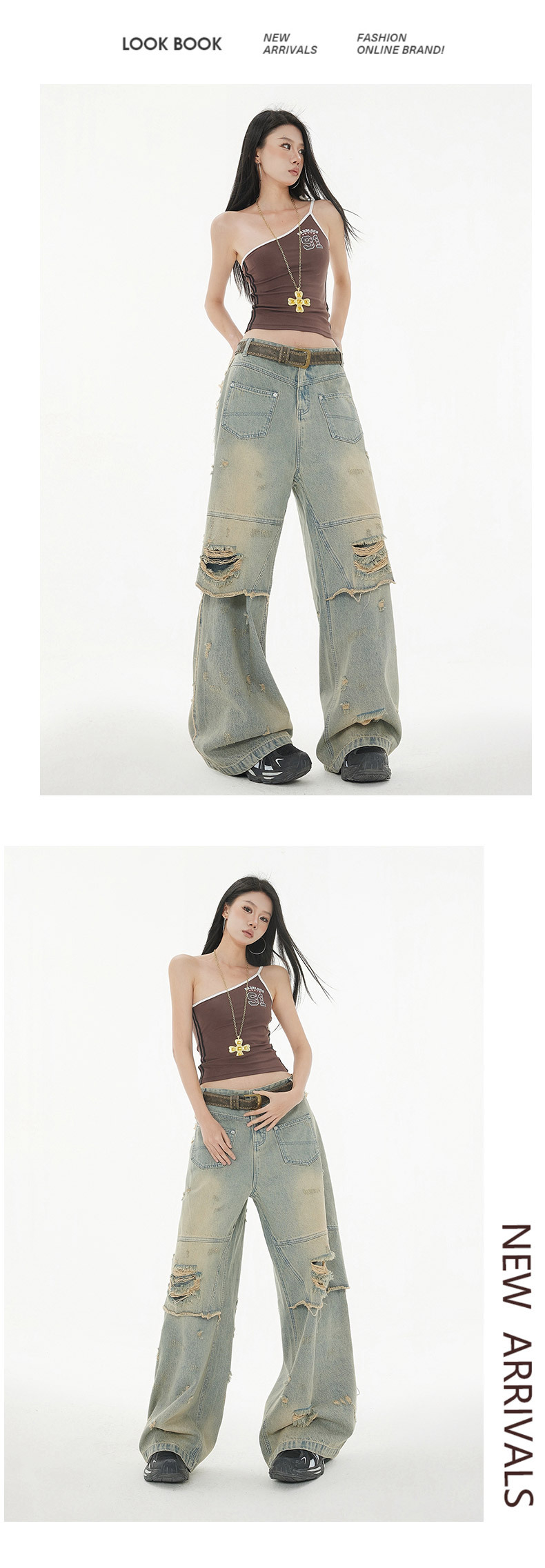 Elevate your summer workwear with our Women's Distressed Slim Floor-Length Wide-Leg Denim Pants, designed for both style and comfort. Perfectly blending distressed aesthetics with a professional look, these pants will become your go-to for a chic office outfit or casual day out.