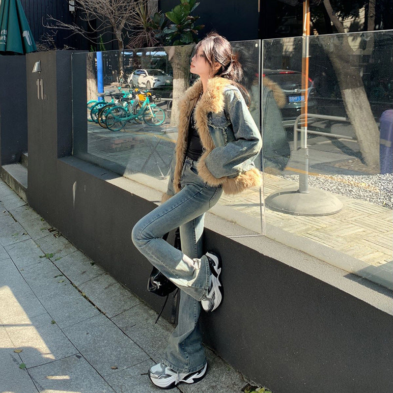 Women's Flared Jeans Double Button Elastic Fitted Versatile Flare Pants