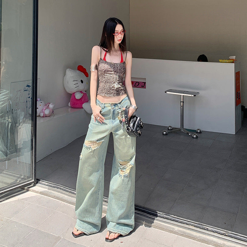 Elevate your wardrobe with our Women's High Waist Slim Narrow Leg Jeans, expertly crafted from premium denim for a chic and stylish look. Designed for the fashionable woman, these jeans feature a unique hole design that adds a trendy flair to your outfit.