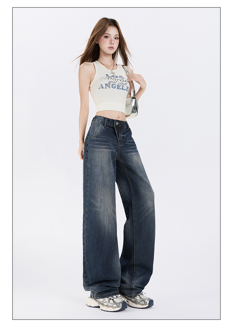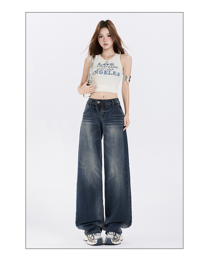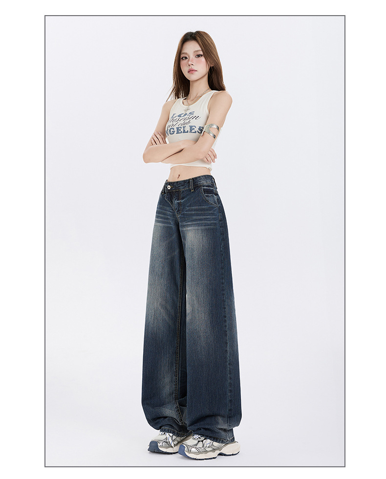 Women's Low Waist Straight Leg Jeans - Summer Water Washed Wide Leg Pants