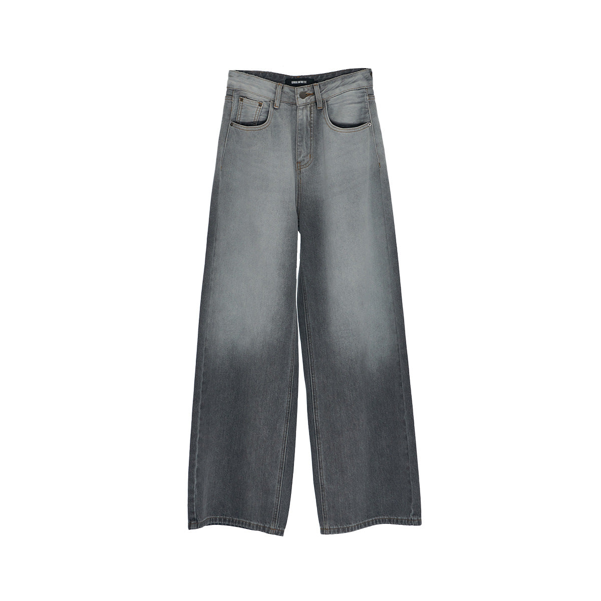 Women's White Denim Trousers - Gradient Wide-Leg Long Pants for Commuting